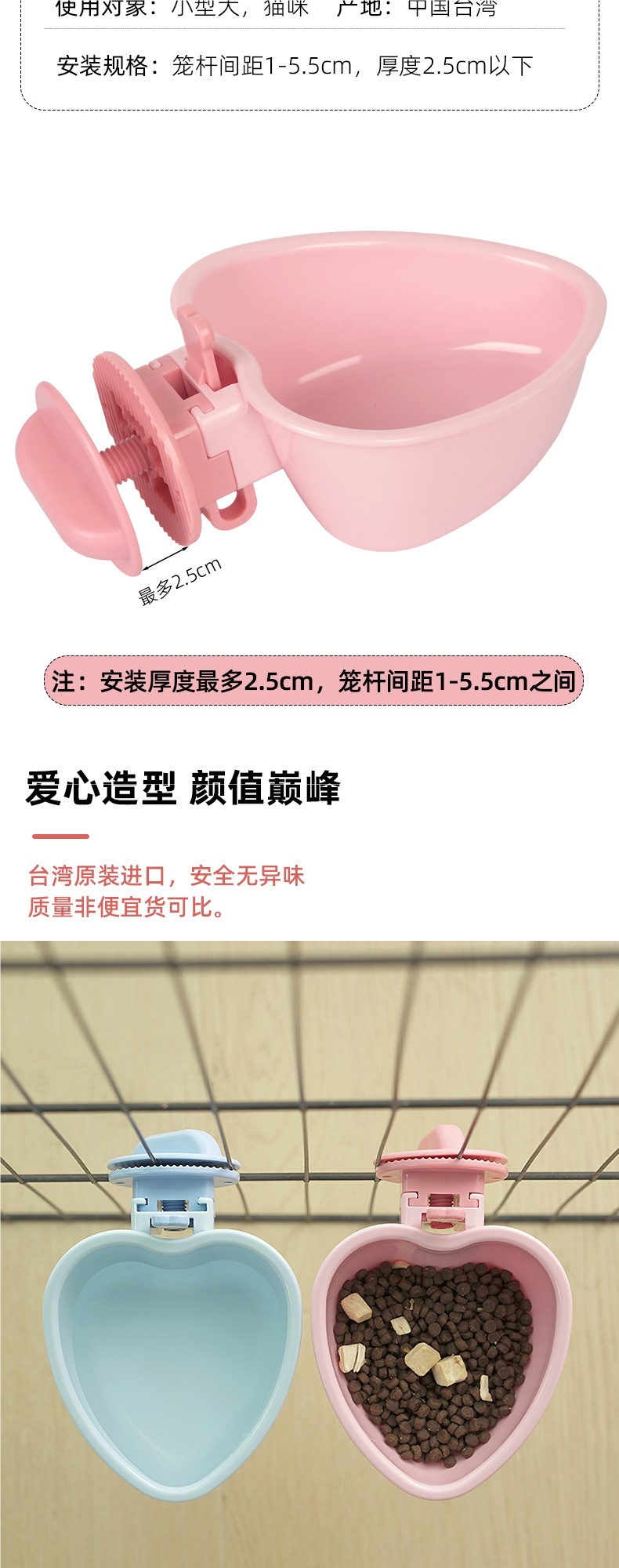 걸이형 고양이밥그릇, 애완동물밥그릇, 소형견 고정식 개밥그릇, 개케이지, 고양이케이지그릇, 고양이와 개를 위한 만능