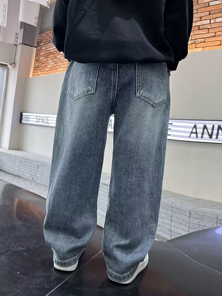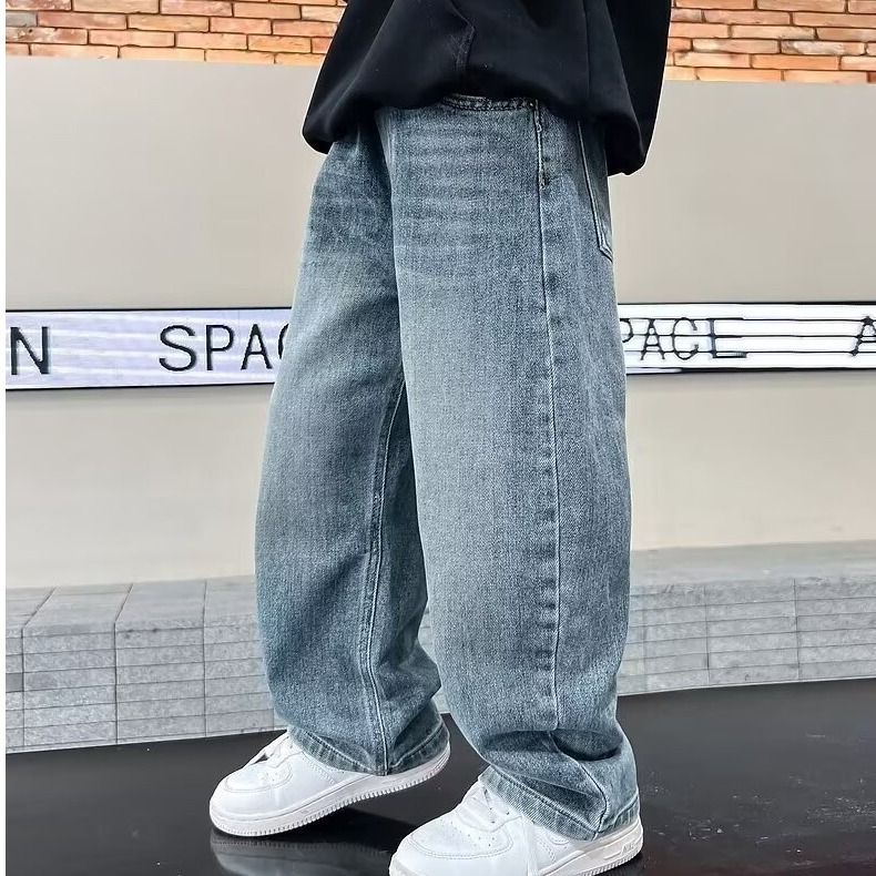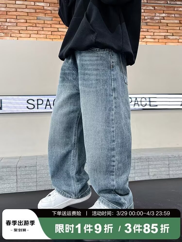 어린이 잘 생긴 아동복 봄과 가을 청바지 소년의 넓은 다리 바지 중 · 대형 어린이 새 스트레이트 바지 튀긴 거리 얇은 착용스토어 가기