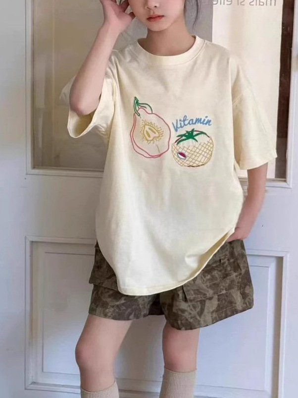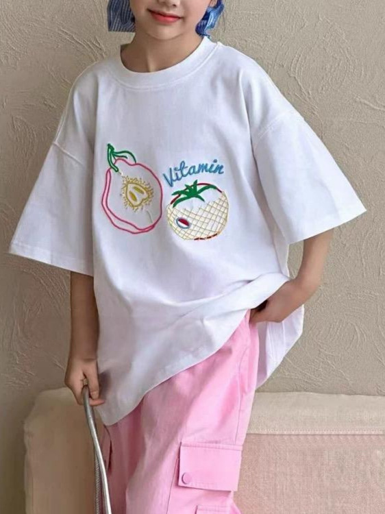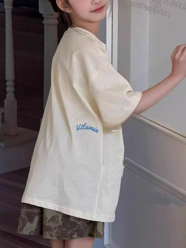 어린이 소녀 여름 얇은 면 반팔 티셔츠 2025 새로운 스타일 소녀 여름 빠른 건조 반팔 티셔츠스토어 가기