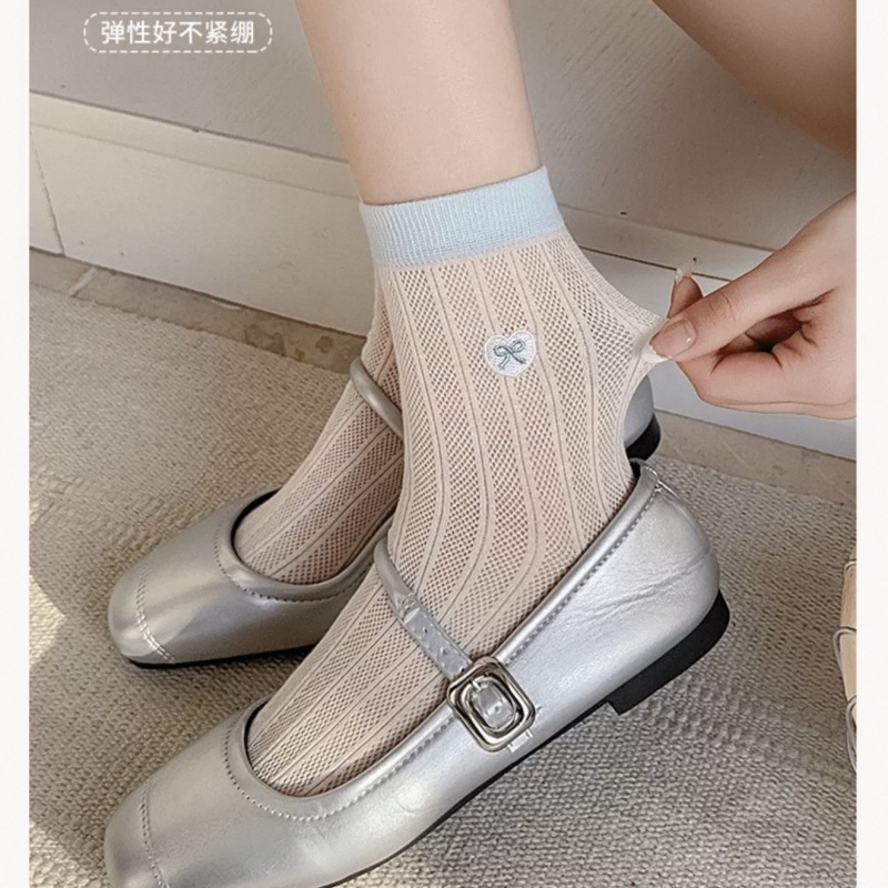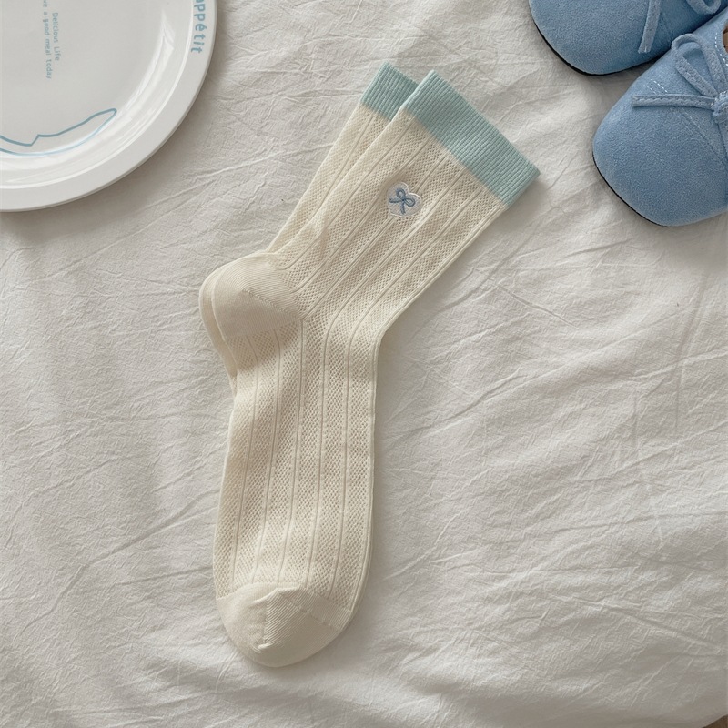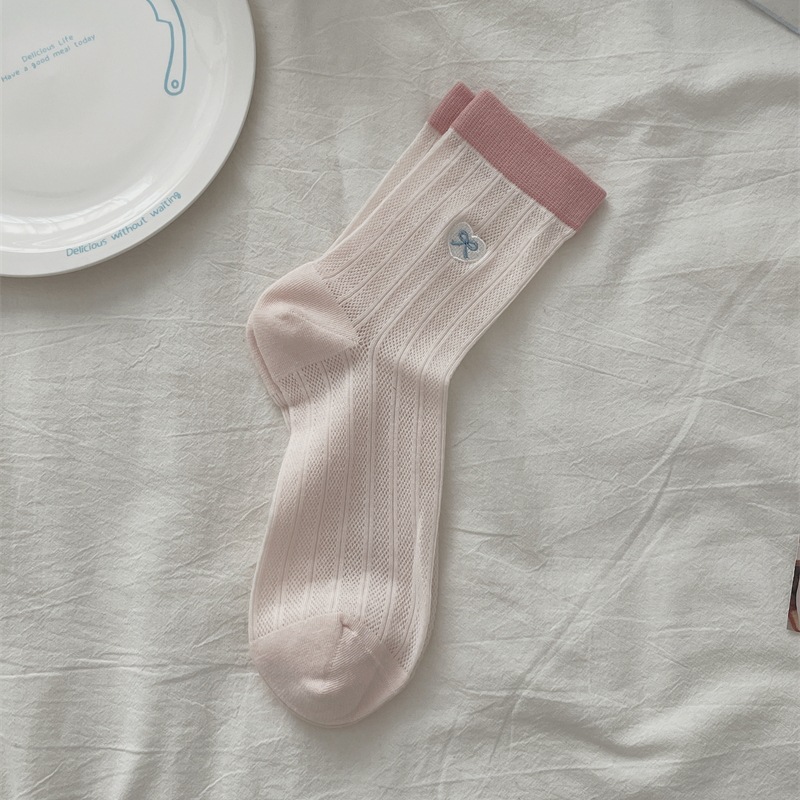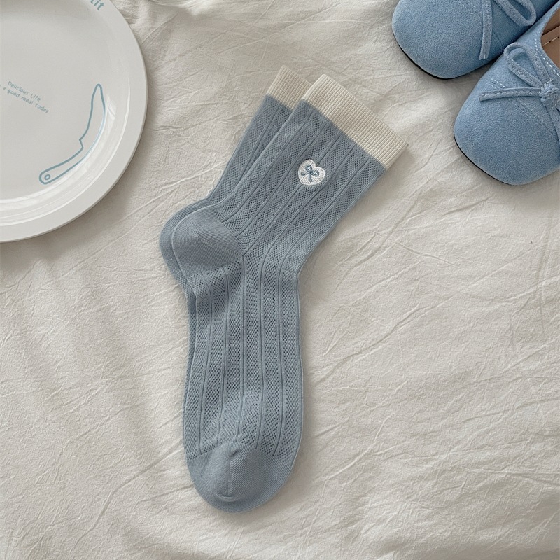 양말 여성의 얇은 코튼 메쉬 튜브 양말 사랑 활 자수 대비 색상 파일 양말 여름 통기성 양말