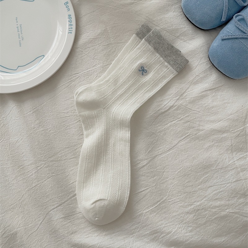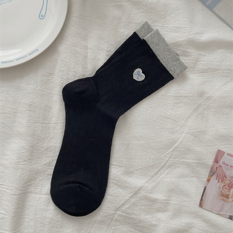 양말 여성의 얇은 코튼 메쉬 튜브 양말 사랑 활 자수 대비 색상 파일 양말 여름 통기성 양말스토어 가기