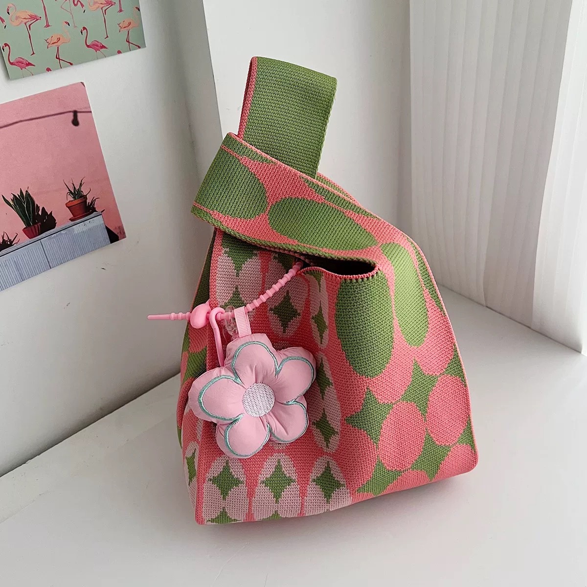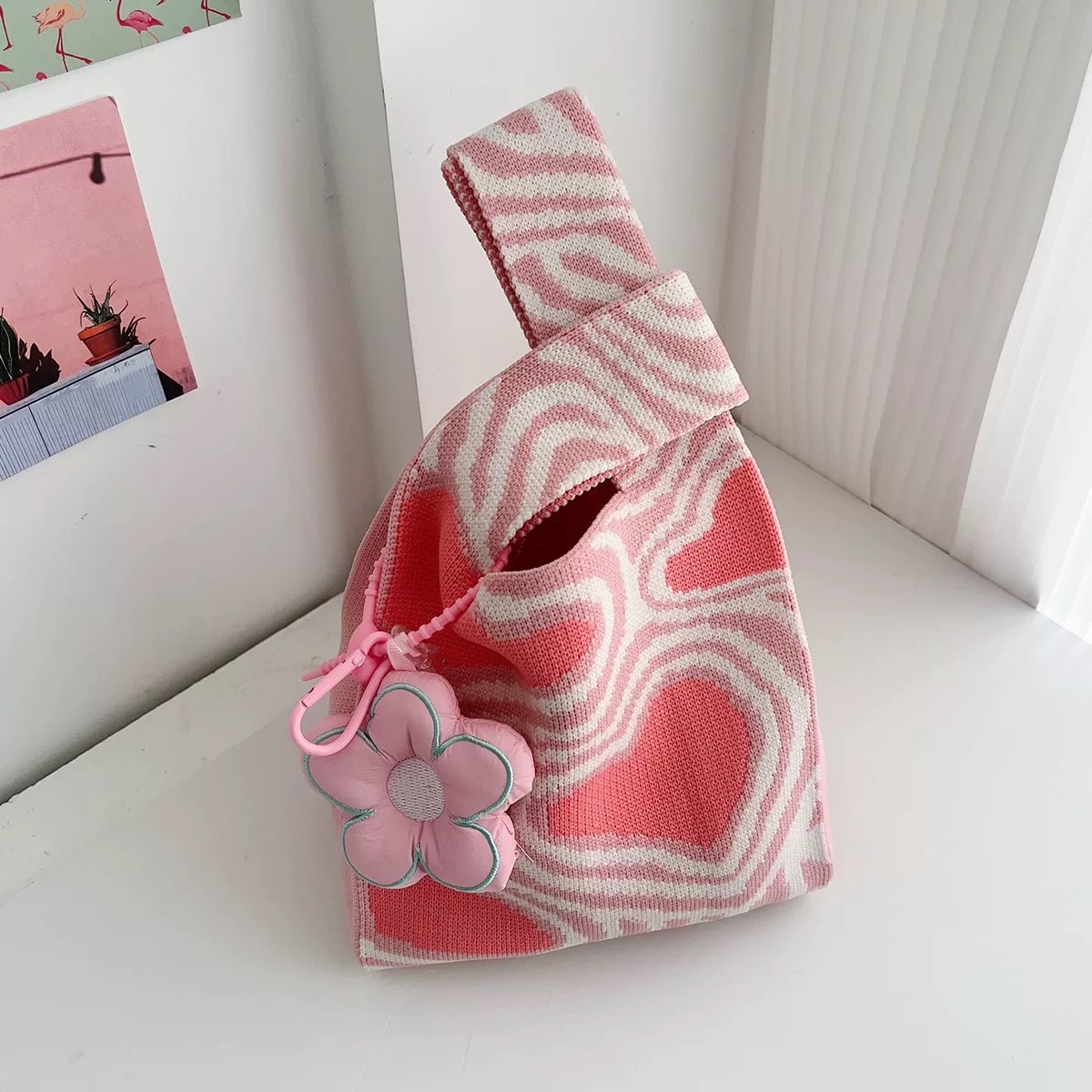 Xiaoba Usaqiji 질감 니트 핸드백 휴대용 핸드백 토트 백 핸드백 선물 포장