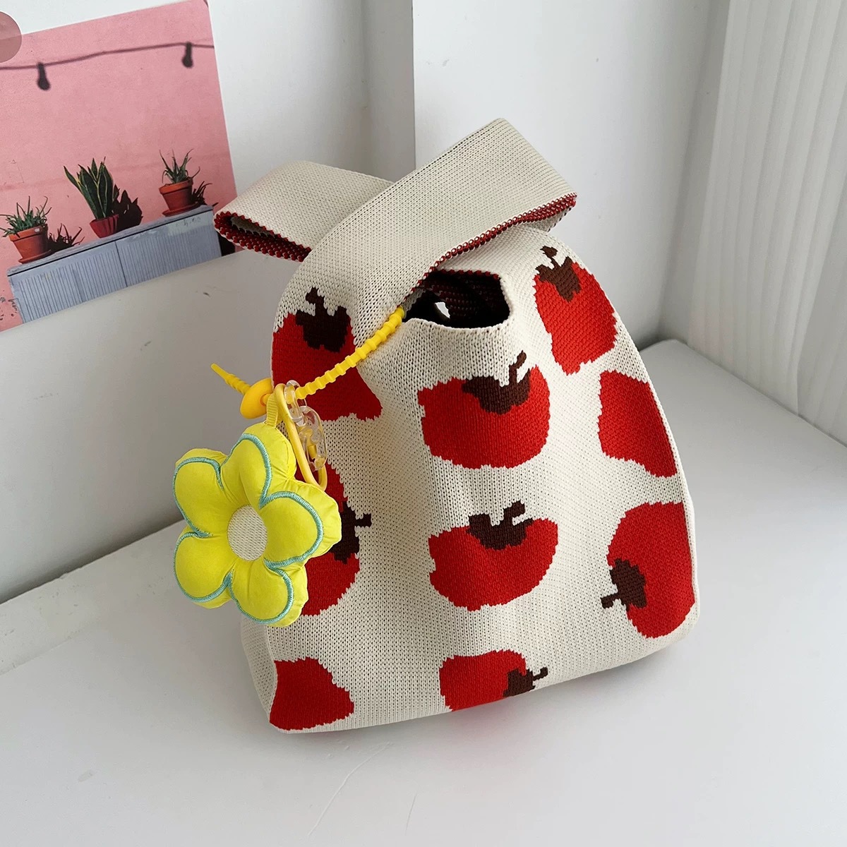 Xiaoba Usaqiji 질감 니트 핸드백 휴대용 핸드백 토트 백 핸드백 선물 포장스토어 가기