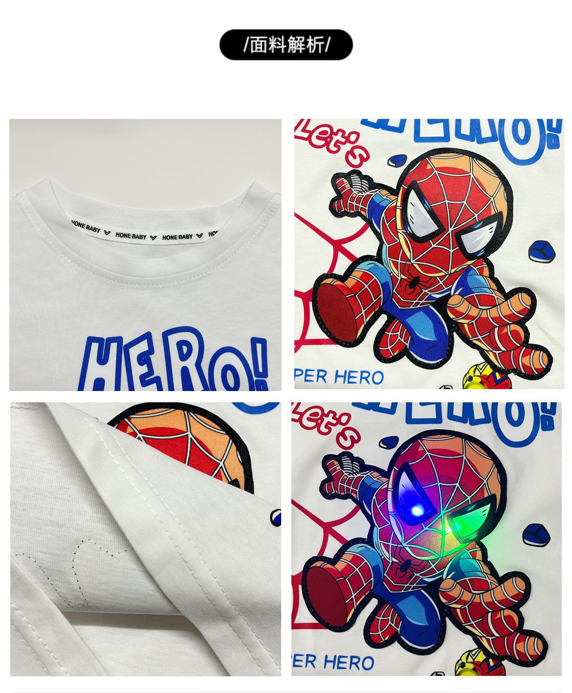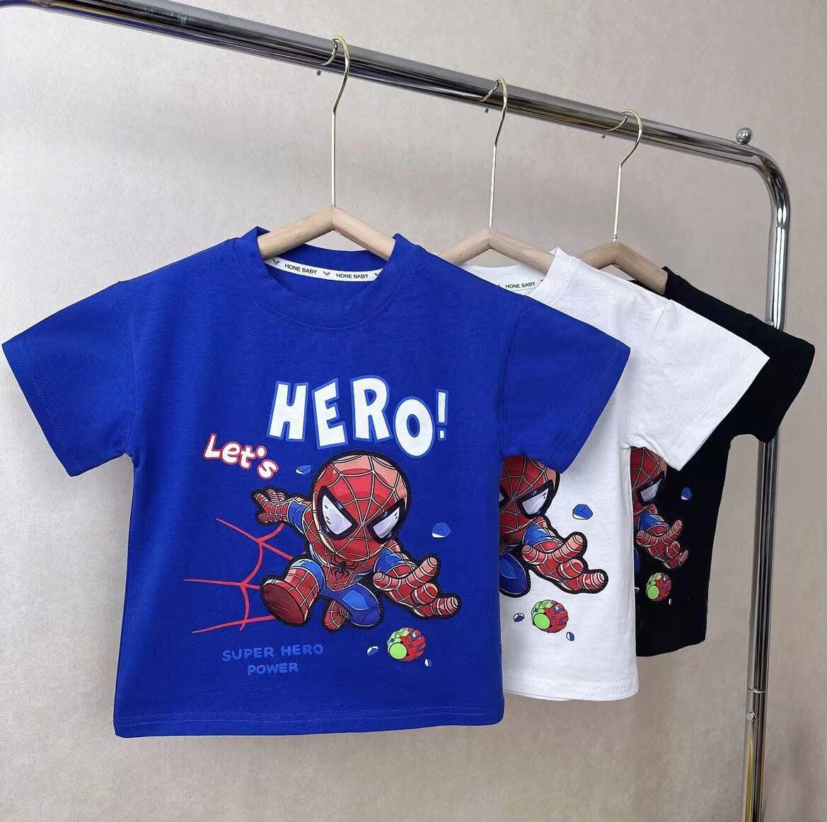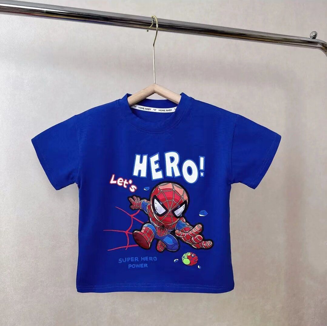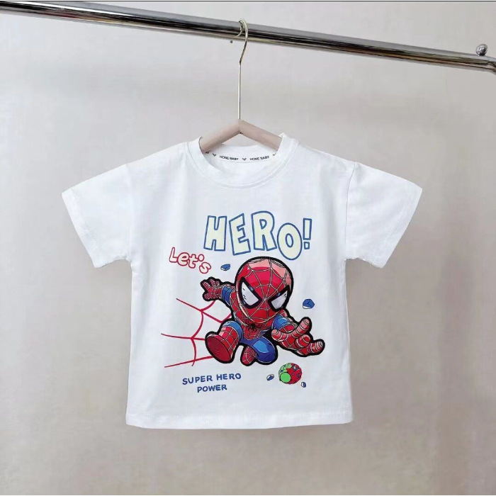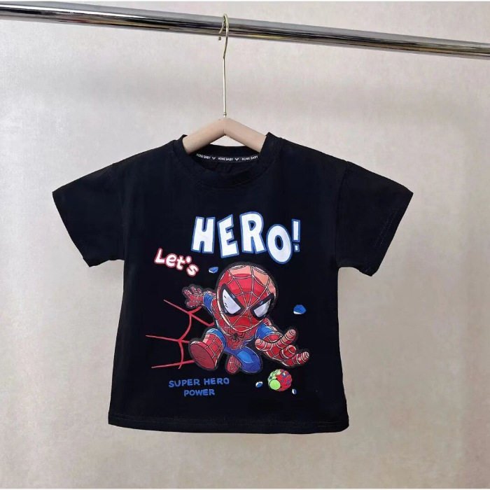 2025 새로운 인기 의류 소년 순수 코튼 의류 조명 스파이더 맨 순수 코튼 반팔 빛나는 반팔 티셔츠스토어 가기