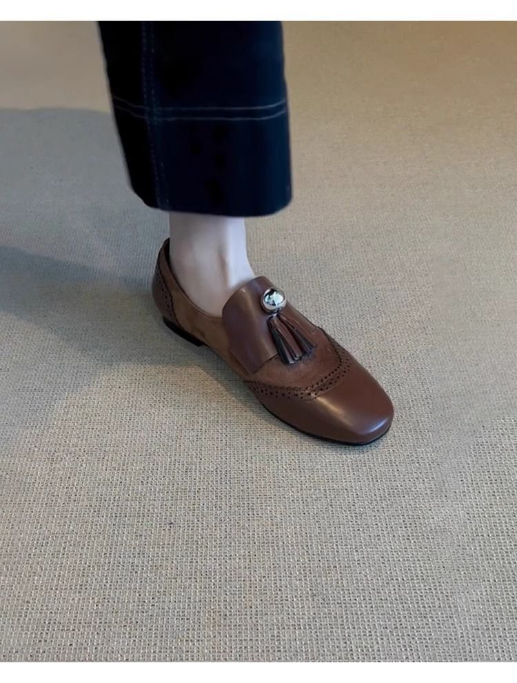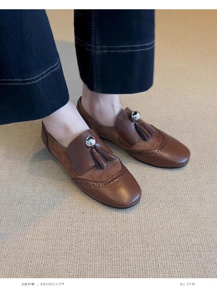 2025 봄 신상 대외 무역 복고 컬러 블록 여성 싱글 슈즈 깊은 입 둥근 발가락 플랫 캐주얼 신발 크로스 보더 대외 무역스토어 가기