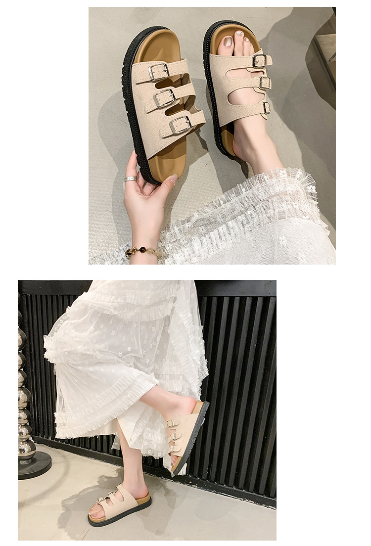벨트 버클 여성 슬리퍼 2025 여름 새로운 부드러운 바닥 홈 비치 샌들 트렌드 크로스 보더 플랫 슬리퍼 여성스토어 가기