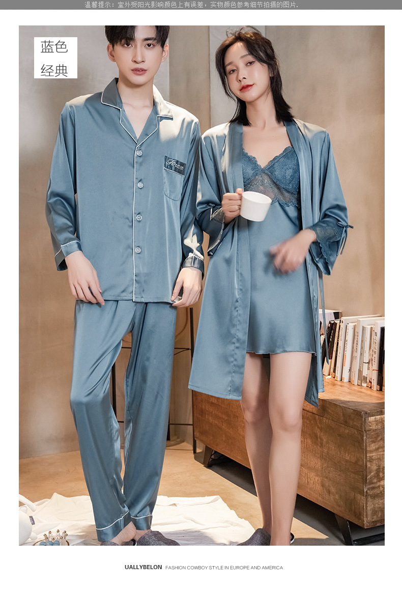 커플 잠옷 봄과 가을 아이스 실크 새로운 여름 하이 엔드 남성용 홈 옷 여자 잠옷 슬링 가슴 패드스토어 가기