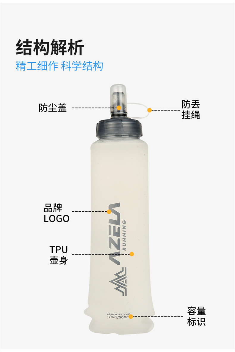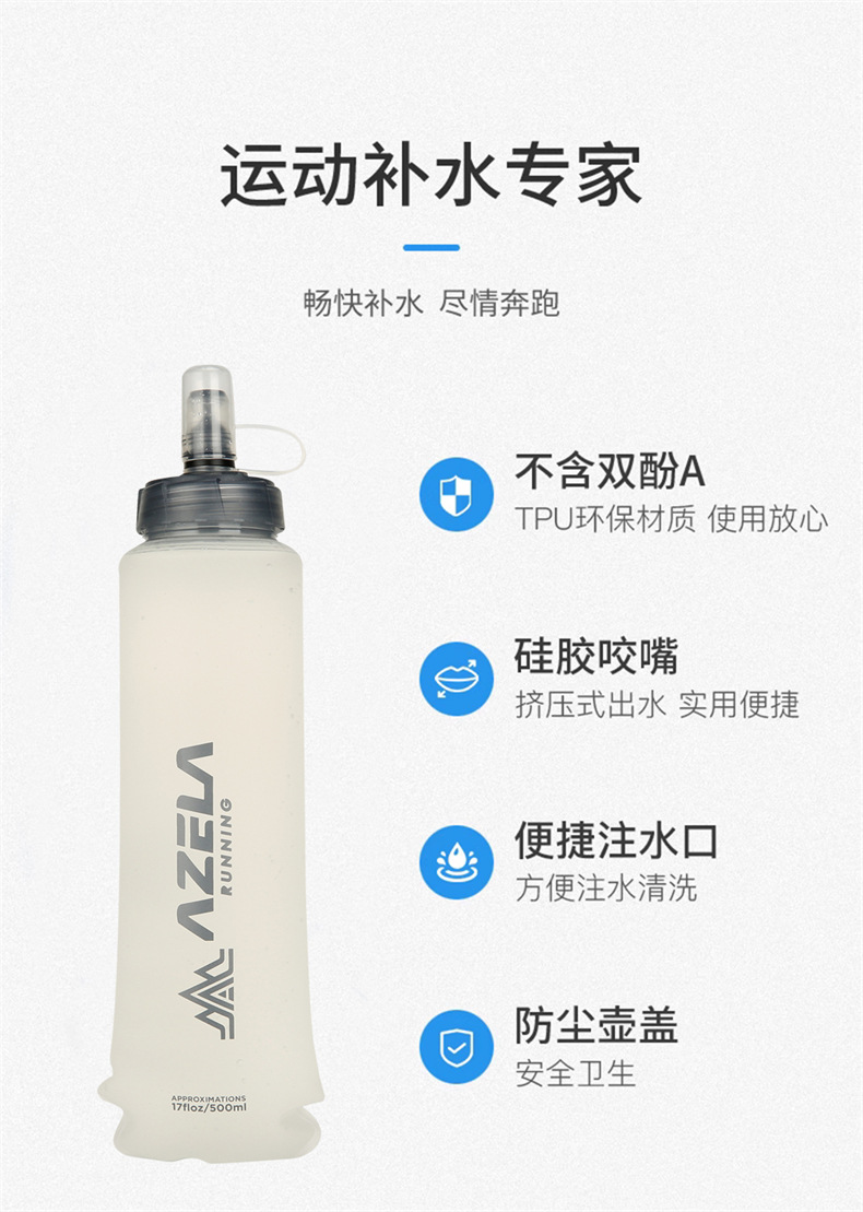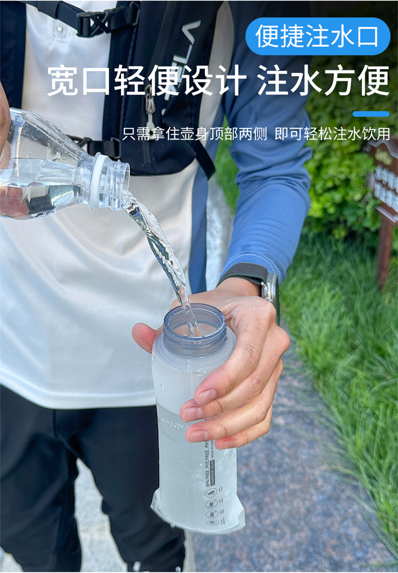 스포츠 소프트 물병 휴대용 접이식 500ml 야외 소프트 물주머니 등산 및 크로스컨트리용 접이식 러닝 물병