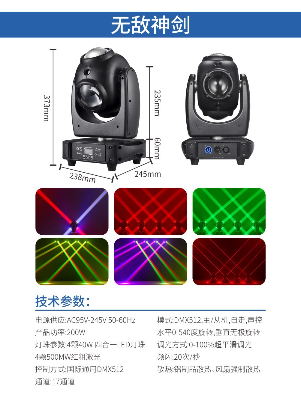 LED 무적 엑스 칼리버 2-in -1 흔들리는 헤드 빔 레이저 바 ktv 개인 방 디스코 점프 풀 컬러 회전 무대 조명
