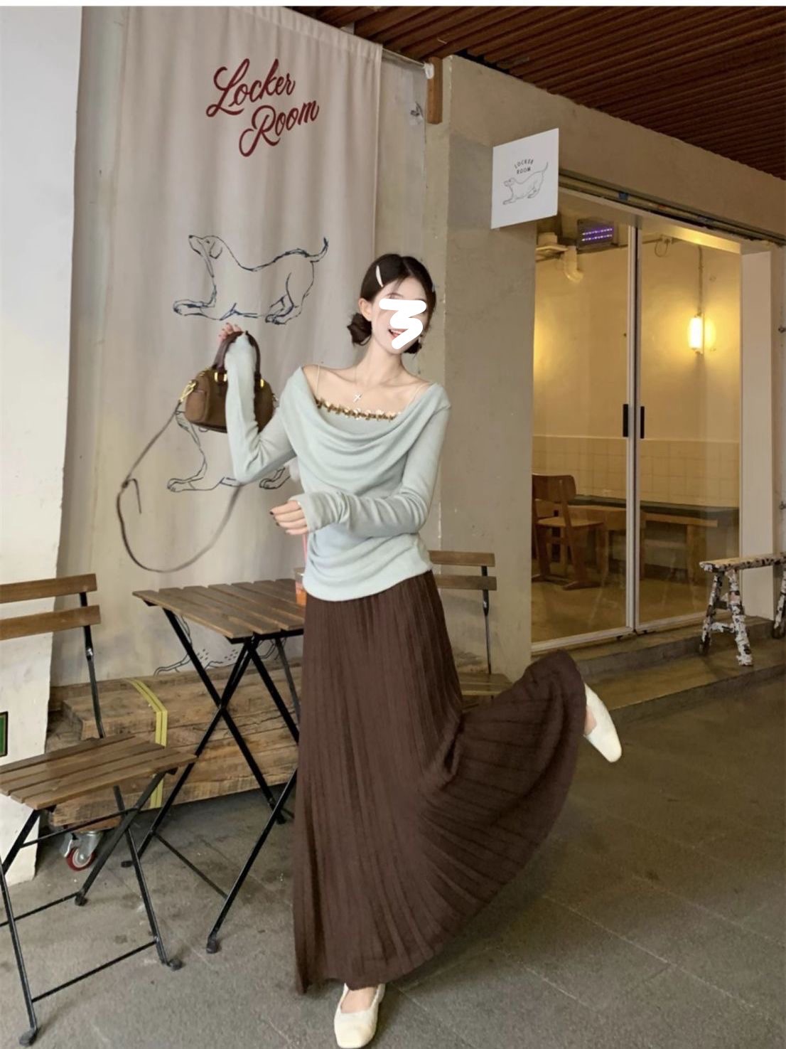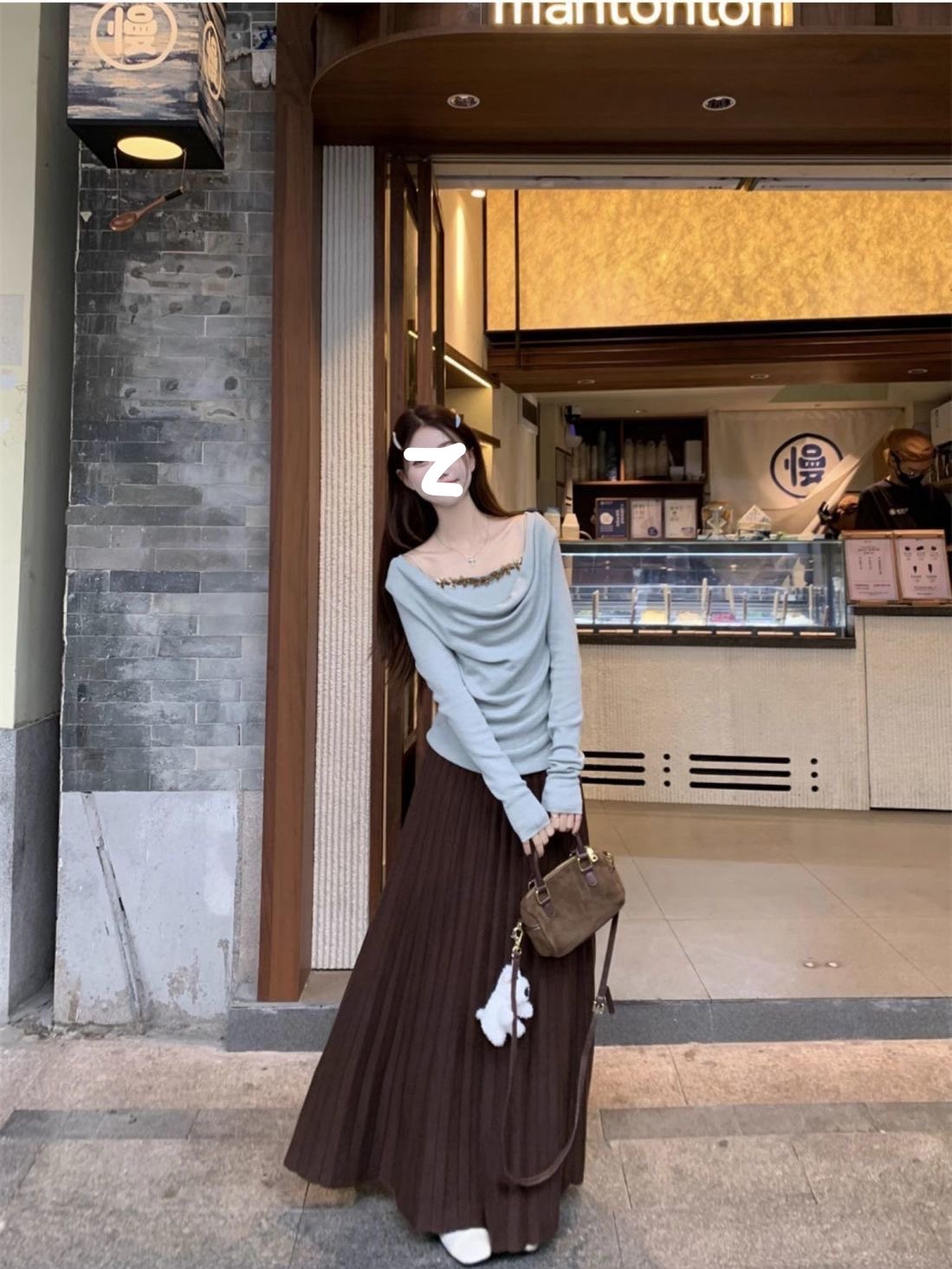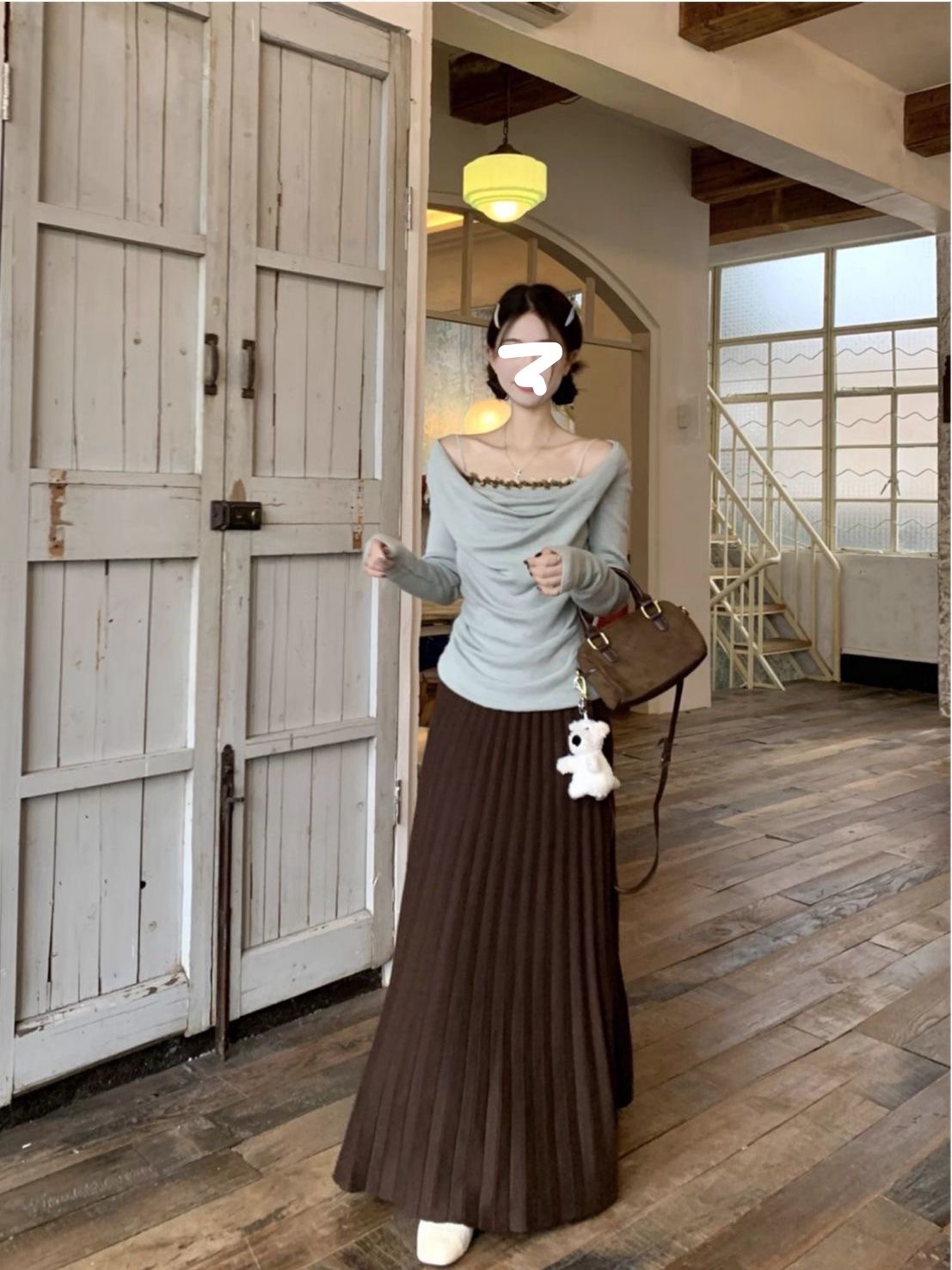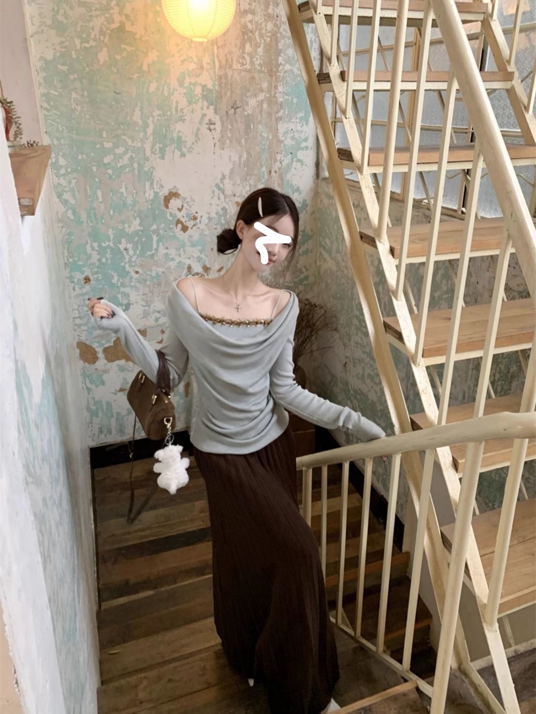 하이 엔드 센스 스윙 칼라 오프 숄더 가짜 투피스 최고 여성 2025 년 봄과 가을 새로운 프랑스 복고풍 세련된 디자인 센스 티셔츠스토어 가기