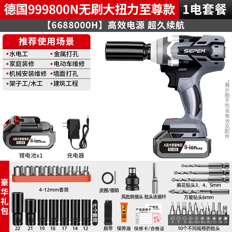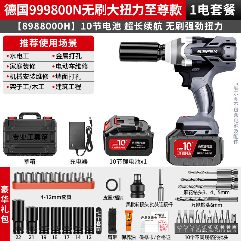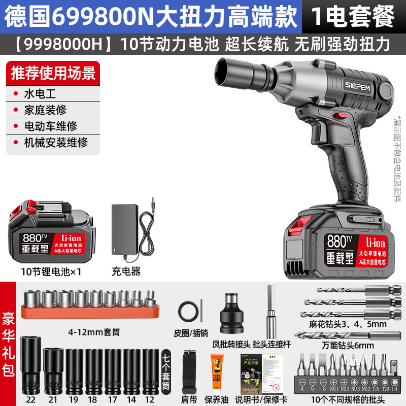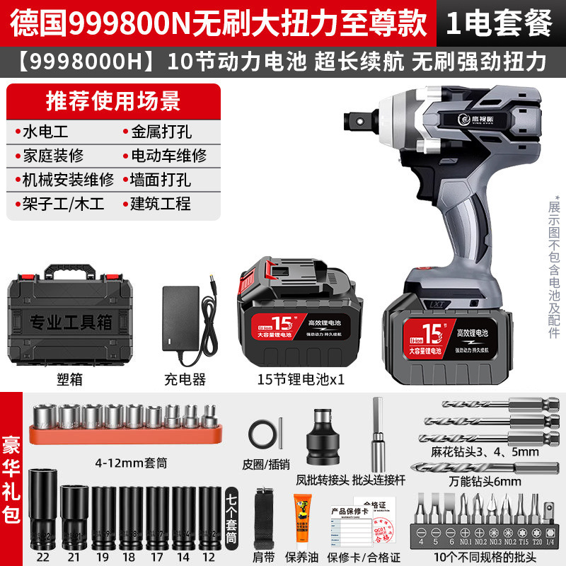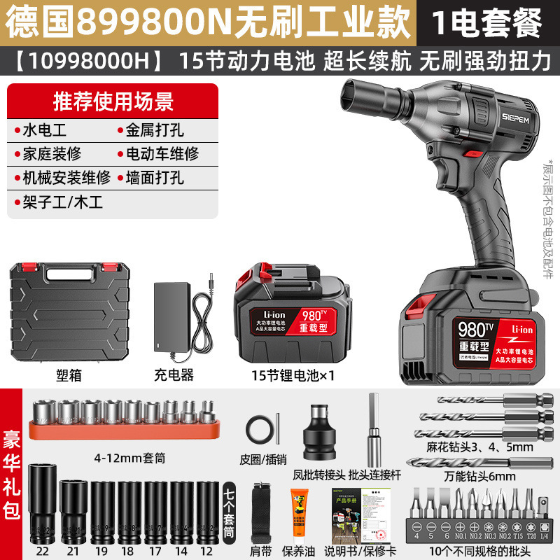• 【99800.N】브러시리스 하이 토크 모델-브러시리스 109998000H, 배터리 1개, 충전 1개, 럭셔리 선물