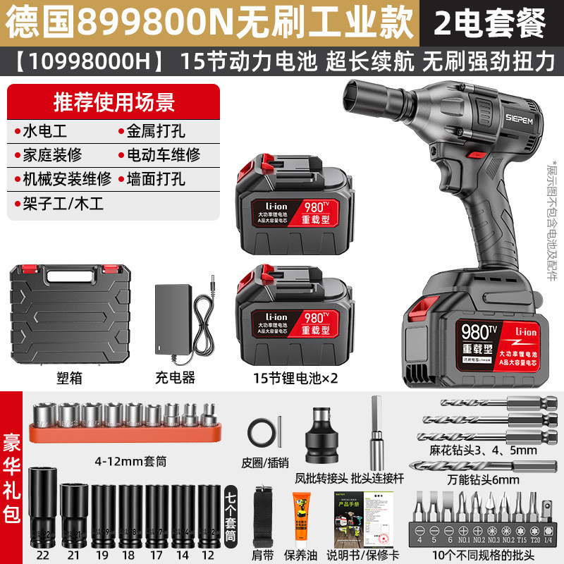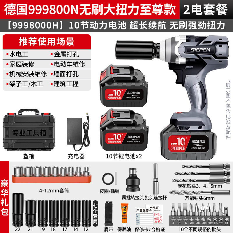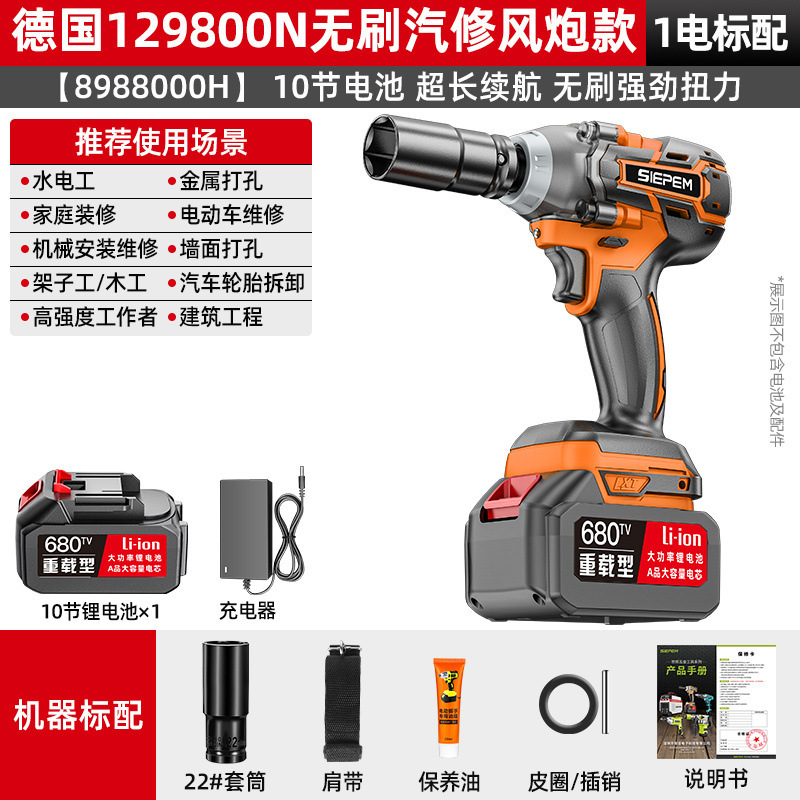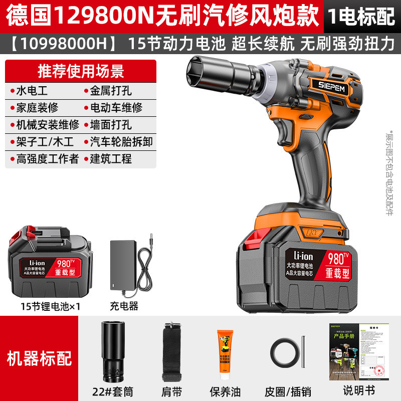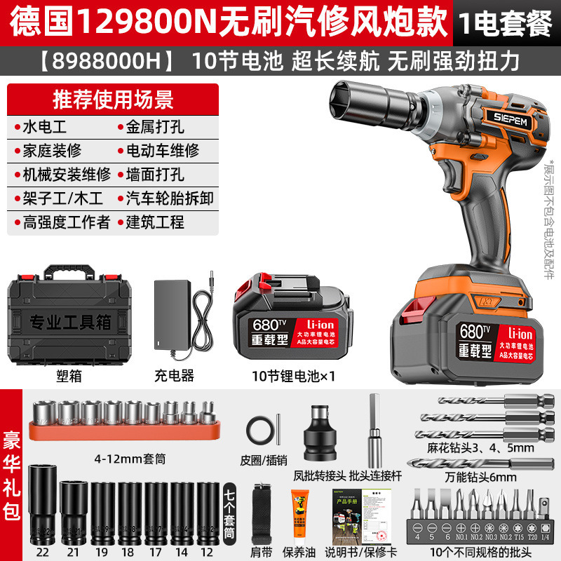 • 【99800.N】브러시리스 하이 토크 모델-브러시리스 109998000H, 배터리 1개, 충전 1개, 럭셔리 선물