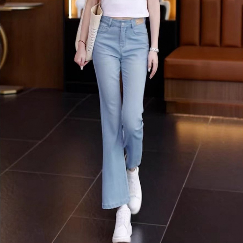 아이스 실크 마이크로 라 청바지 2025 새로운 여성 여름 얇은 여성 바지 작은 9 점 바지 캐주얼 플래 바지
