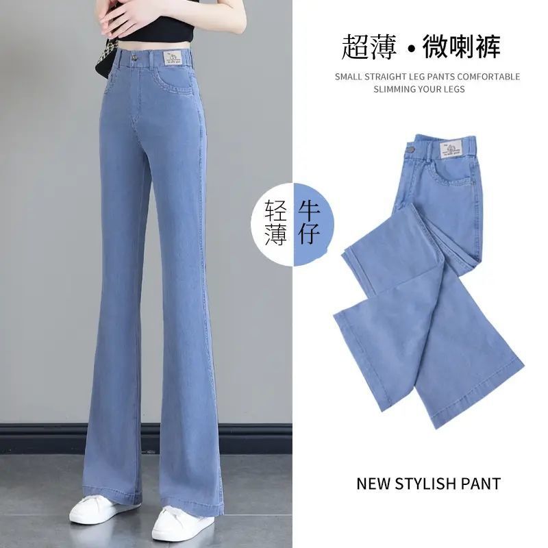 아이스 실크 마이크로 라 청바지 2025 새로운 여성 여름 얇은 여성 바지 작은 9 점 바지 캐주얼 플래 바지스토어 가기