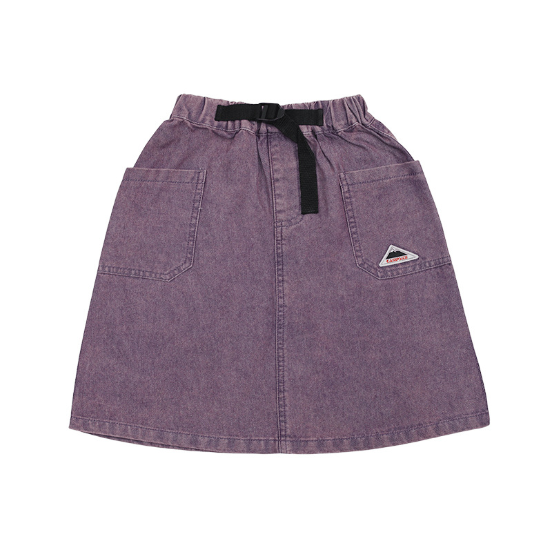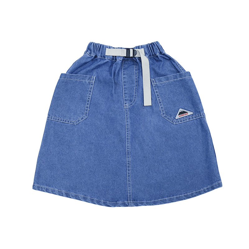 소녀 치마 2025 여름 새로운 어린이 빈티지 세탁 데님 스커트 소녀의 유행 작업복 스커트 A-라인 스커트
