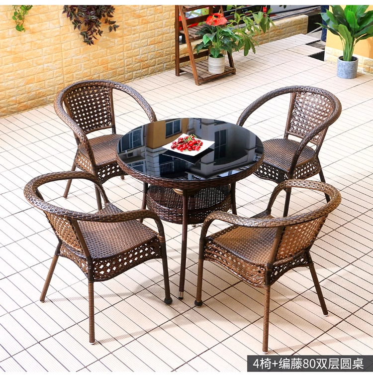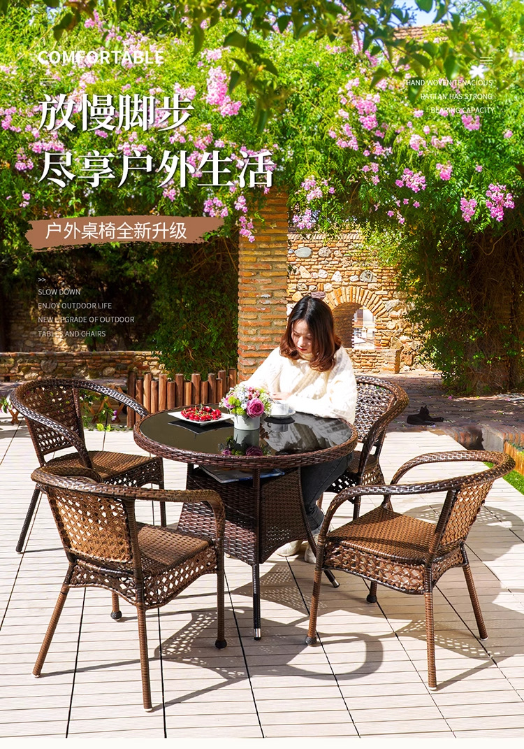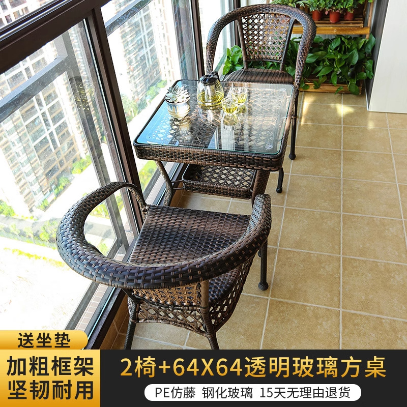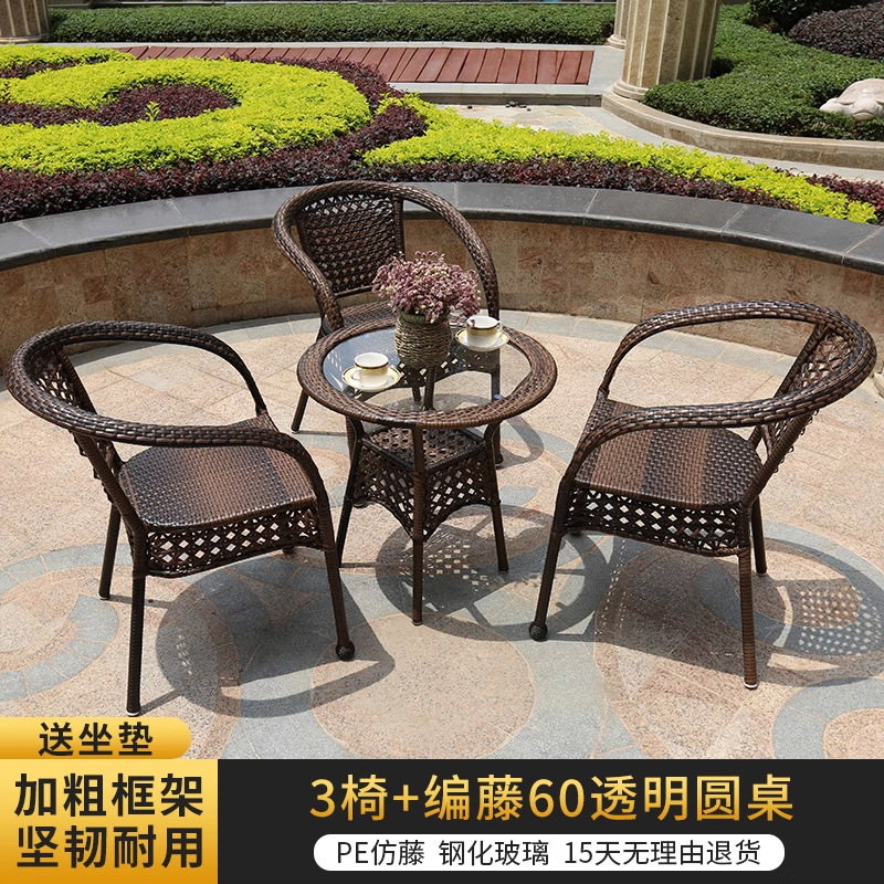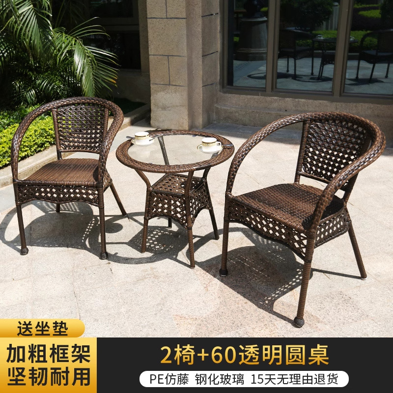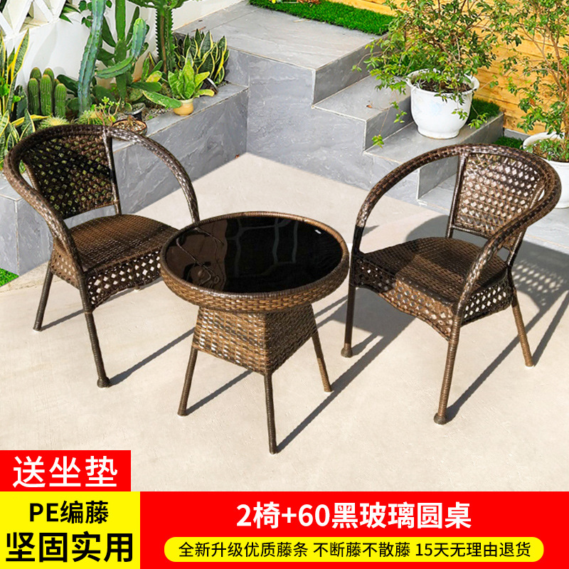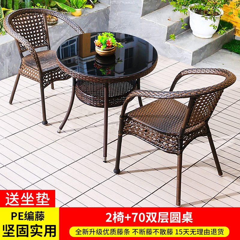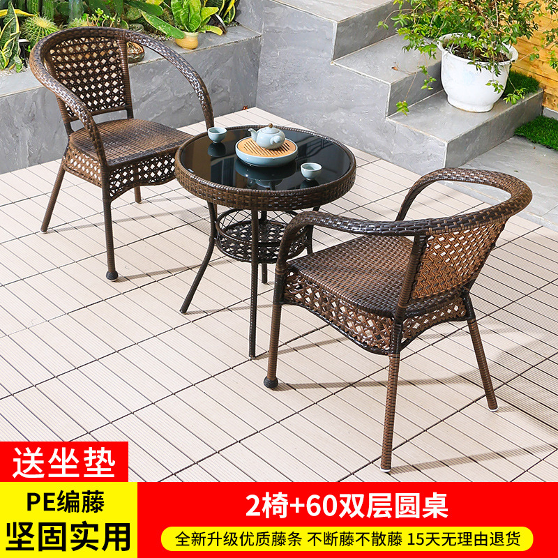 야외 안뜰 테이블과 의자 조합 등나무 의자 3피스 세트 레저 발코니 커피숍 등나무 의자 야외 소형 커피 테이블 등나무스토어 가기