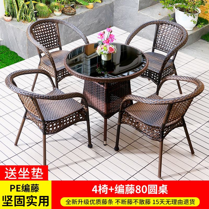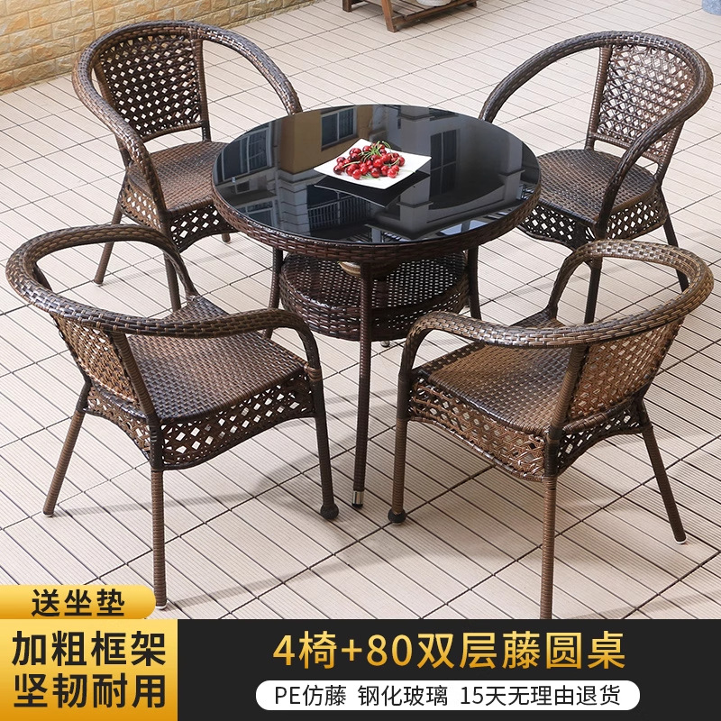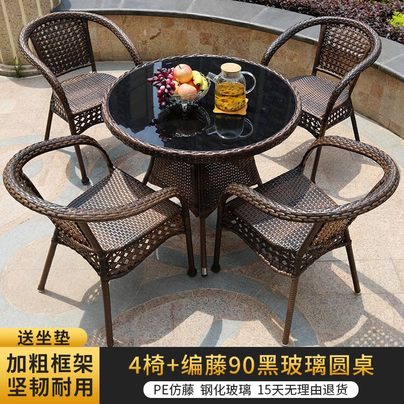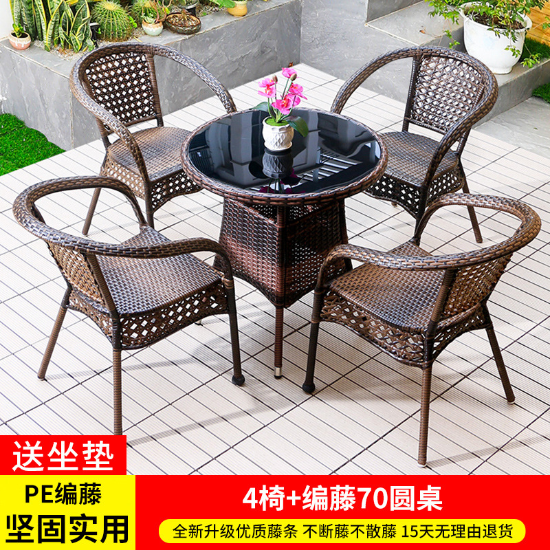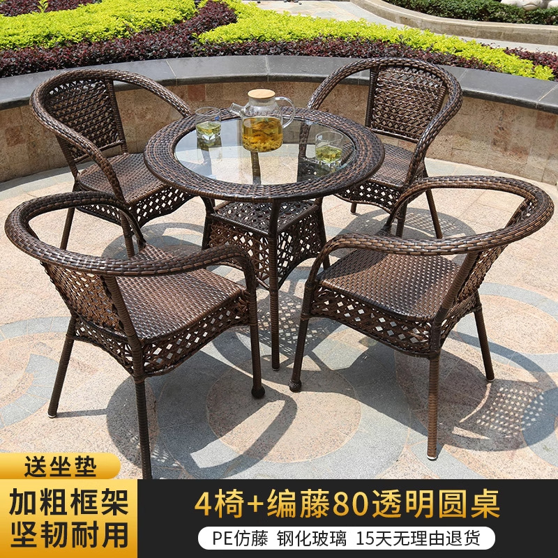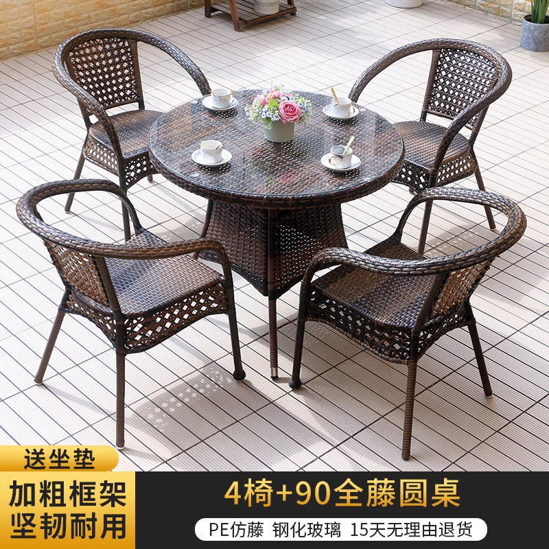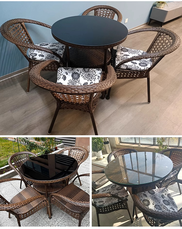 야외 안뜰 테이블과 의자 조합 등나무 의자 3피스 세트 레저 발코니 커피숍 등나무 의자 야외 소형 커피 테이블 등나무스토어 가기