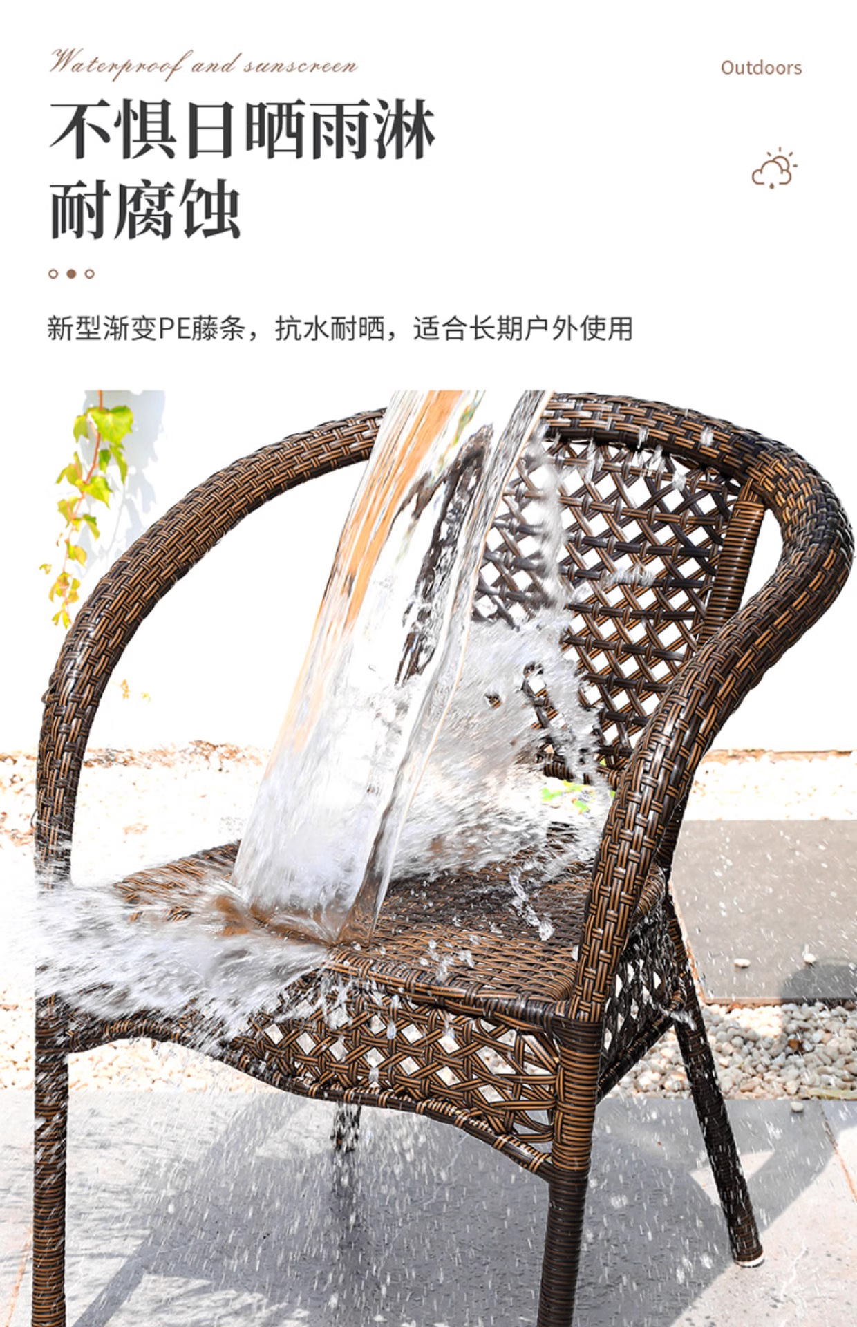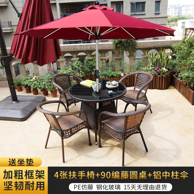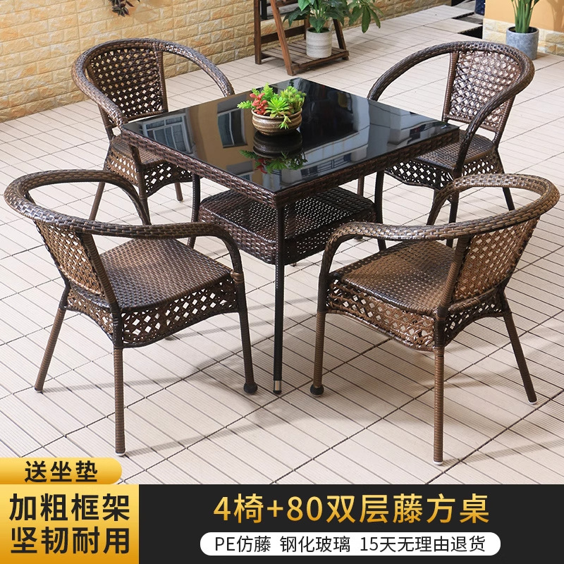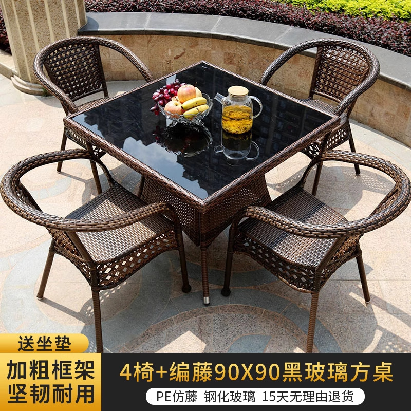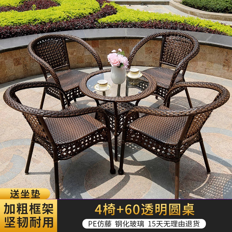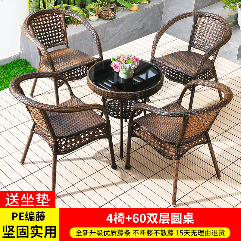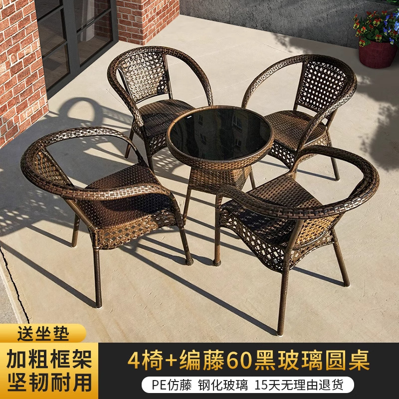 야외 안뜰 테이블과 의자 조합 등나무 의자 3피스 세트 레저 발코니 커피숍 등나무 의자 야외 소형 커피 테이블 등나무스토어 가기