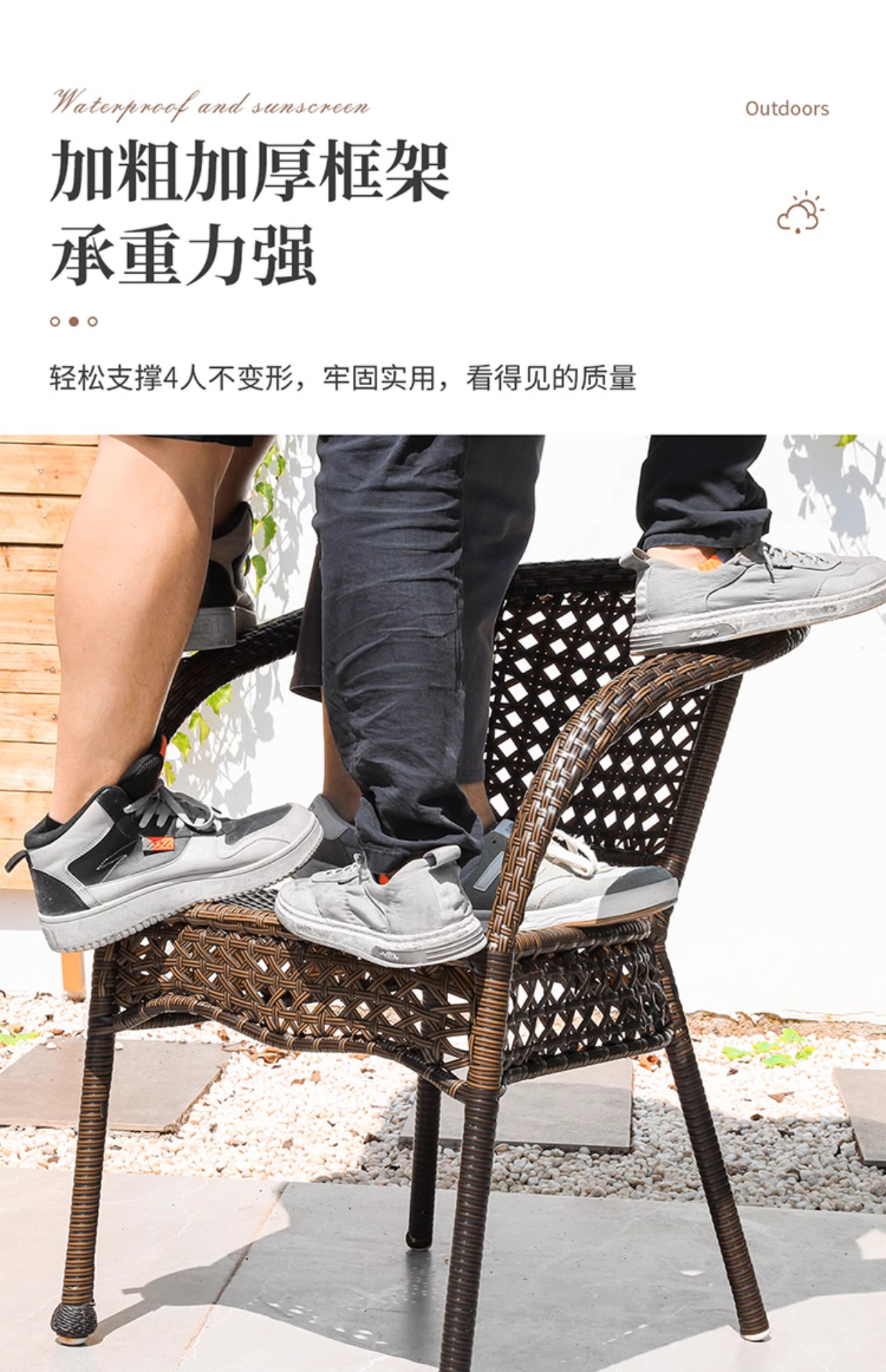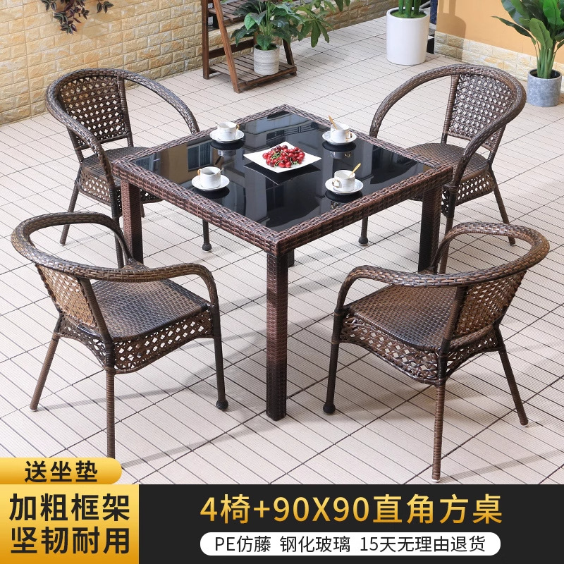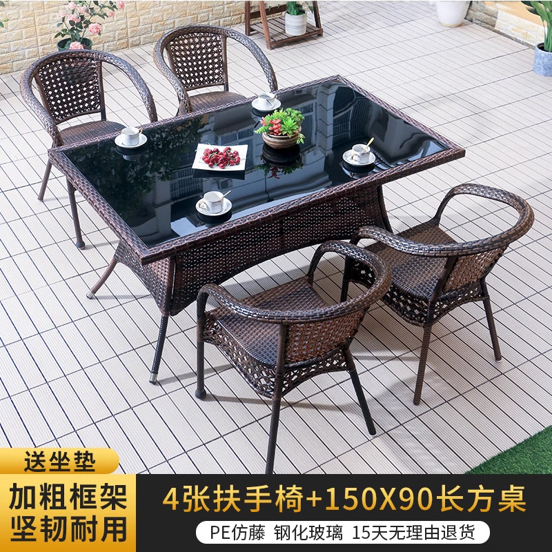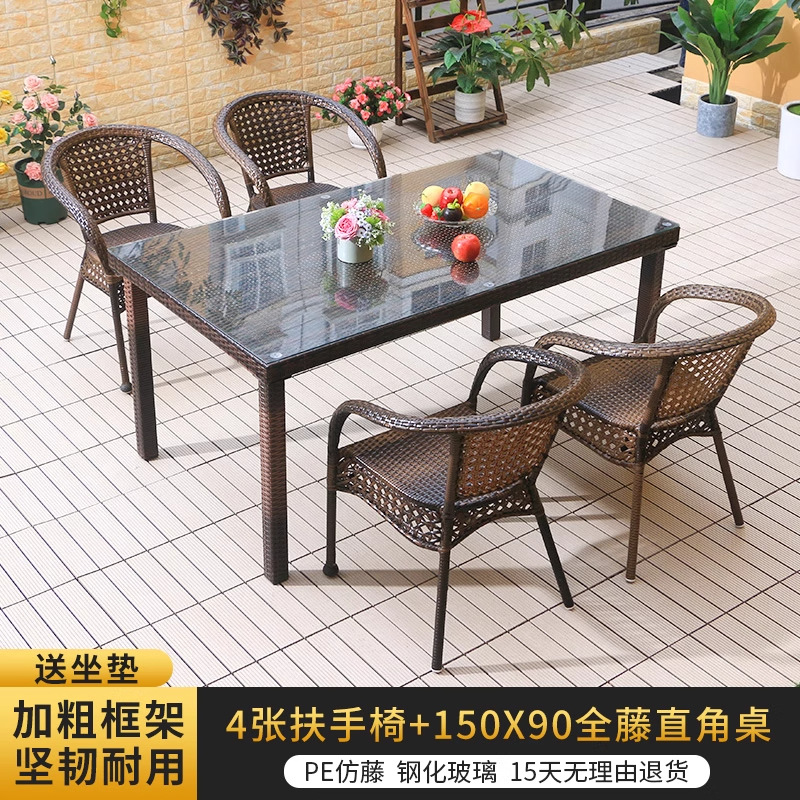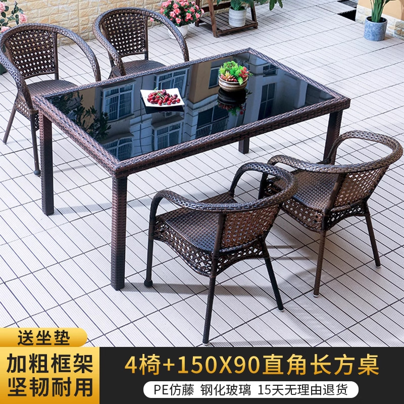 • 의자 4개 + 150X90CM 긴 등나무 테이블