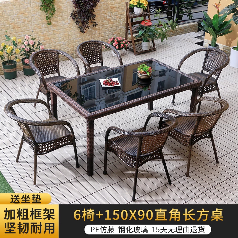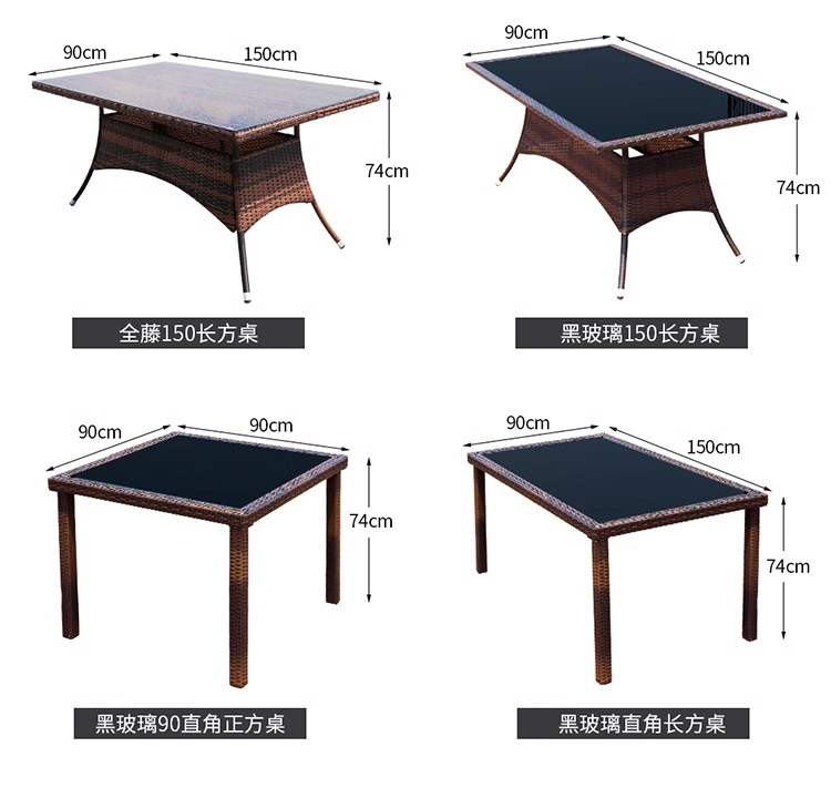 • 의자 4개 + 150X90CM 직각 풀 라탄 롱 테이블