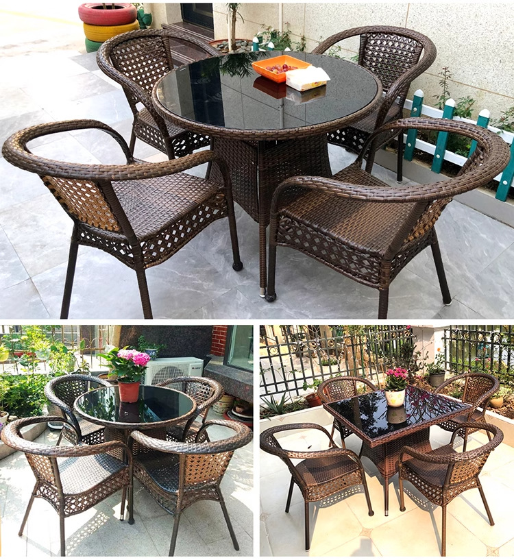 야외 안뜰 테이블과 의자 조합 등나무 의자 3피스 세트 레저 발코니 커피숍 등나무 의자 야외 소형 커피 테이블 등나무