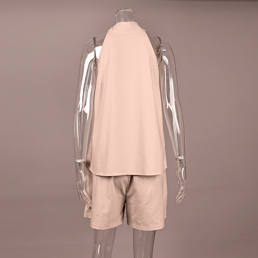 2025 여름 새로운 교수형 목 조끼 높은 허리 넓은 다리 바지 투피스 세트 개성 패션 우아한 통근 유럽과 미국 국경