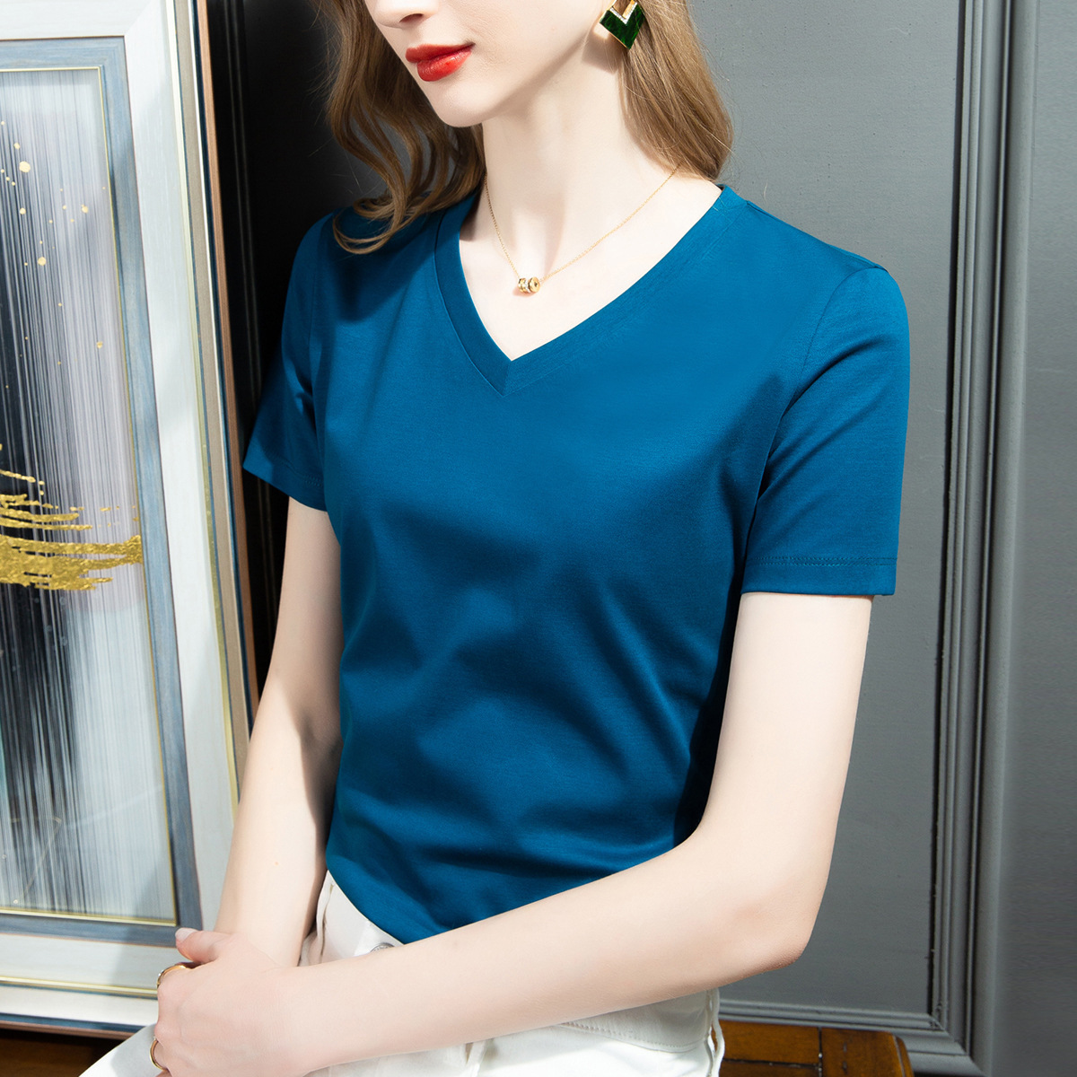 SKU13_主要颜色(孔雀蓝V领)