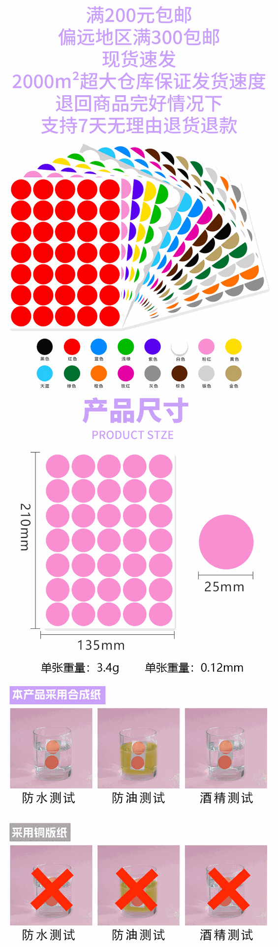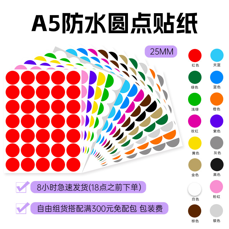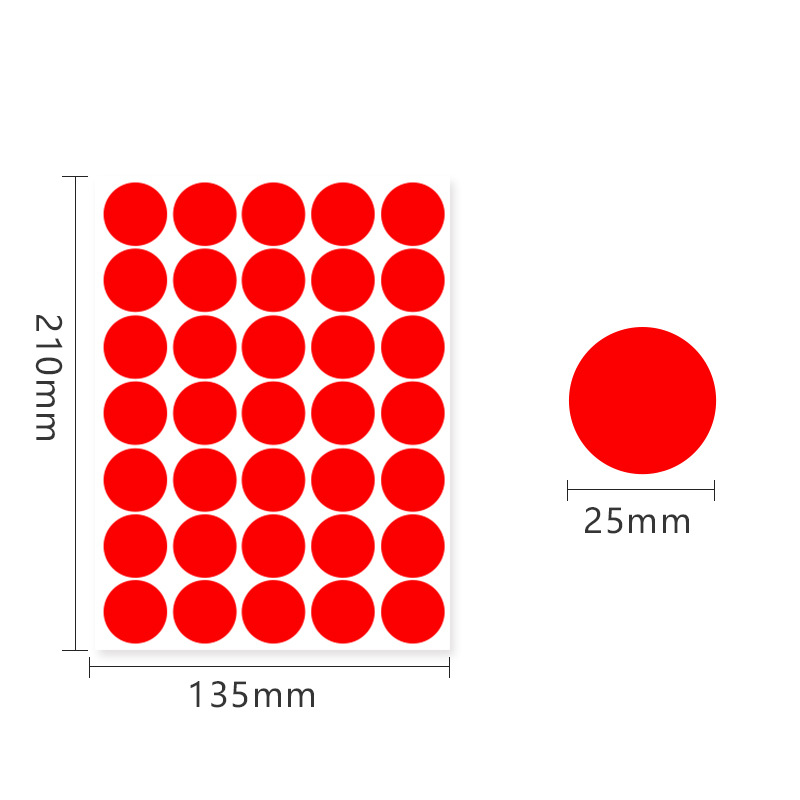 A5 컬러 도트 25mm 라벨 PVC 방수 필기 빈 색상 창고 분류 라운드 비닐 스티커스토어 가기