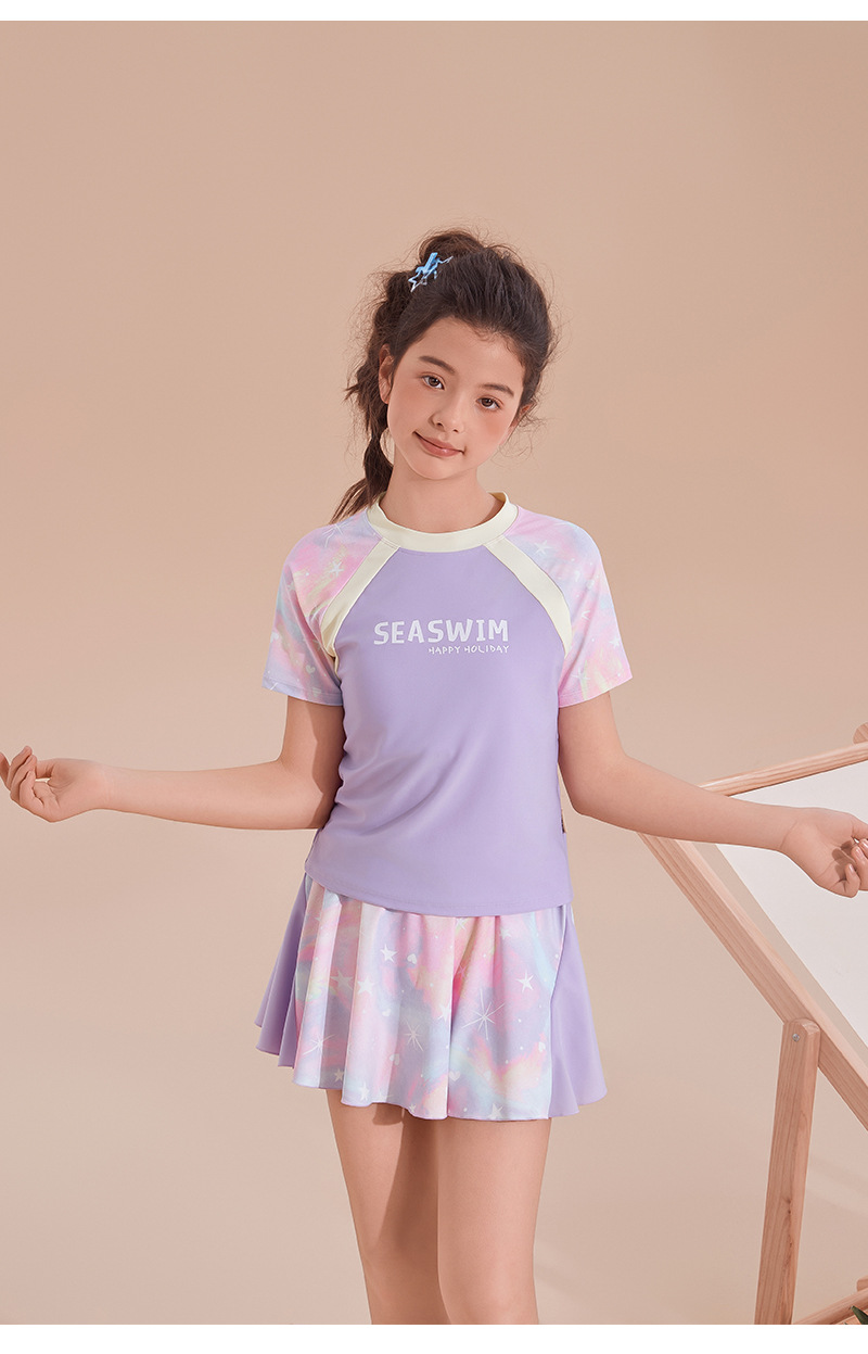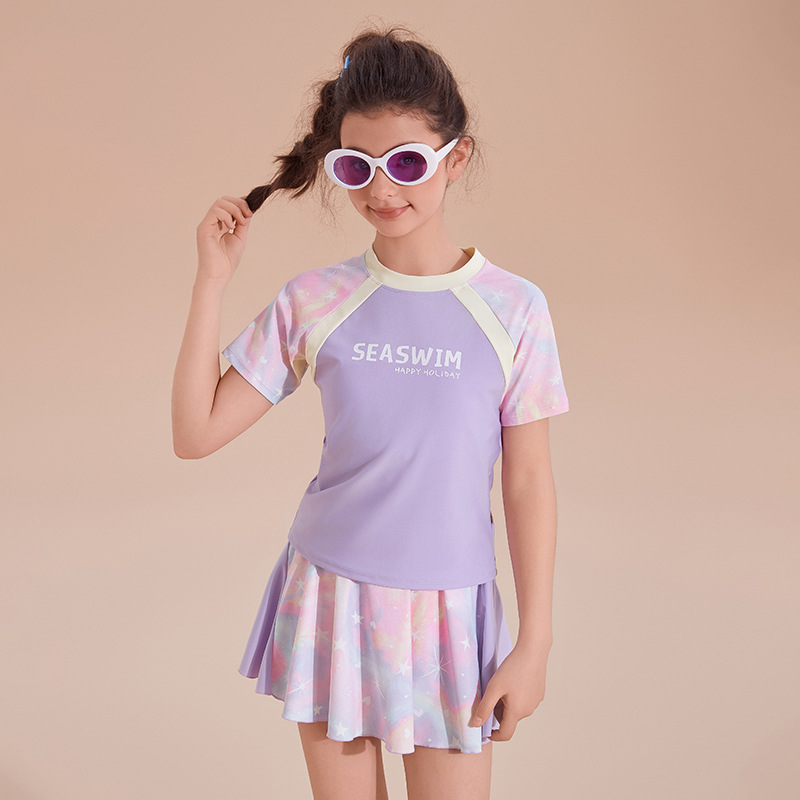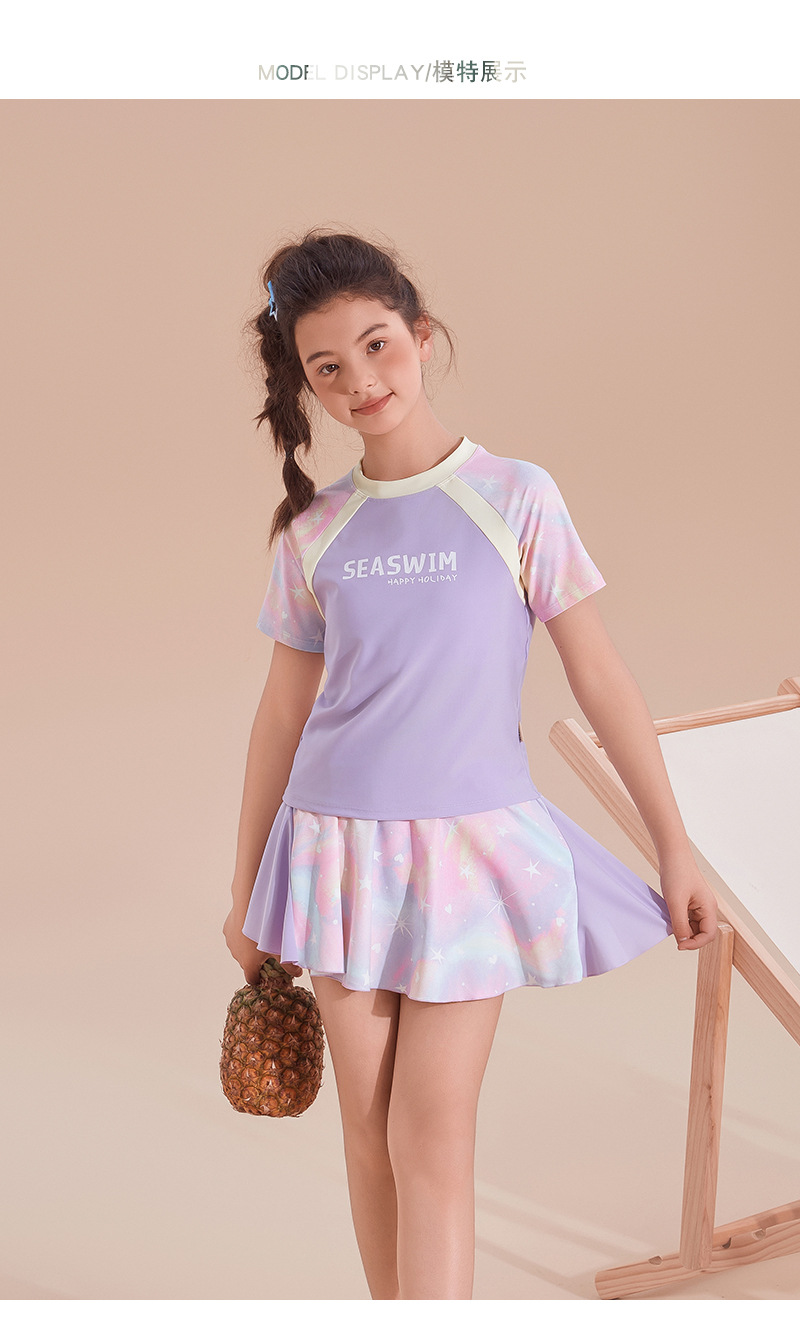 2025 새로운 어린이 수영복 여성 유행 빠른 건조 선 스크린 분할 수영복 큰 어린이 및 소녀 휴일 수영복
