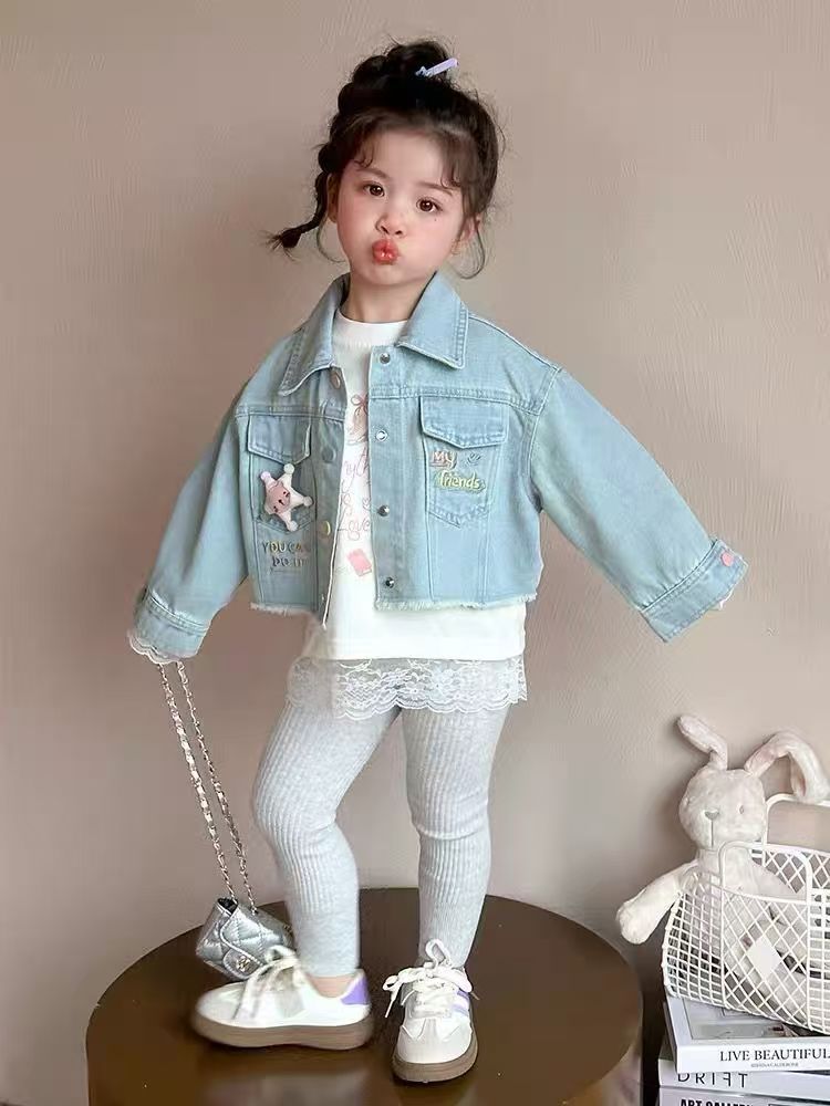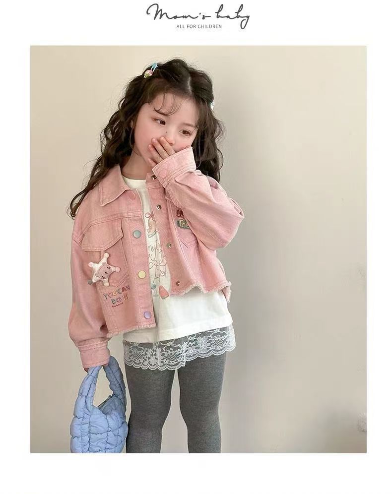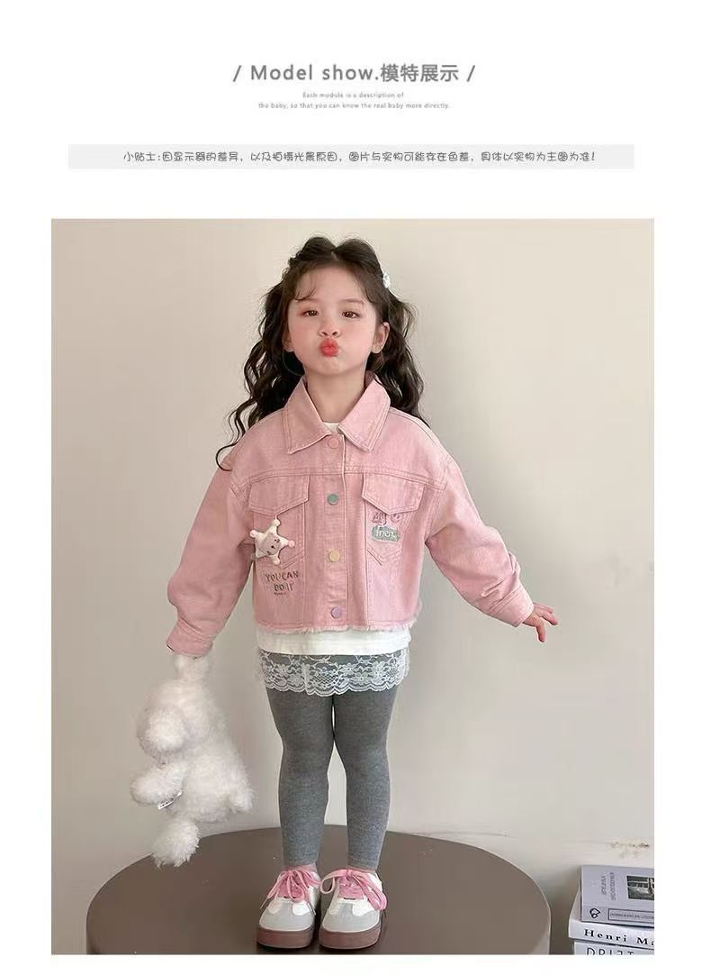 여자 데님 재킷 2025 새로운 스타일 어린이 봄 옷 유행 달콤한 아기 소녀 봄 짧은 재킷 유행스토어 가기