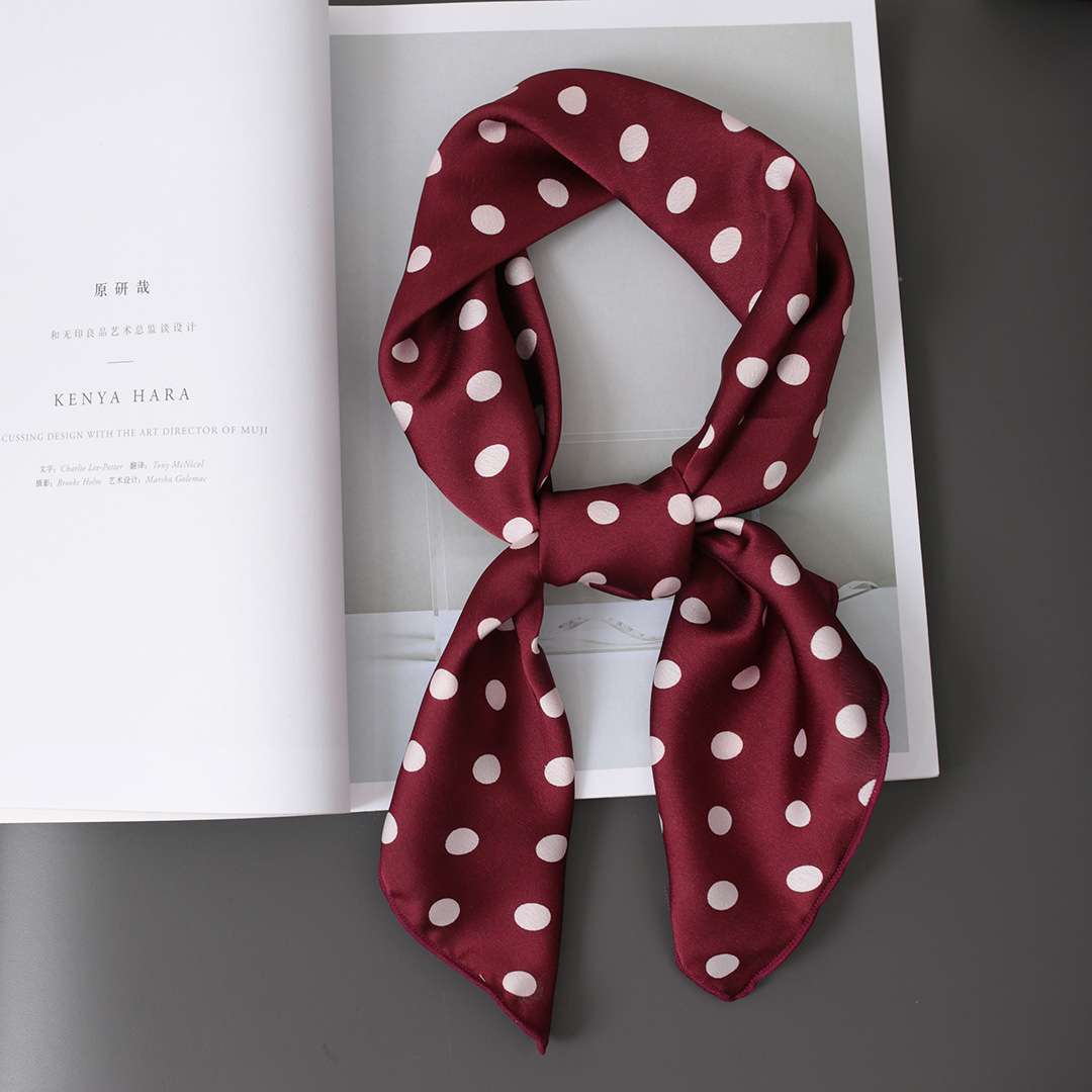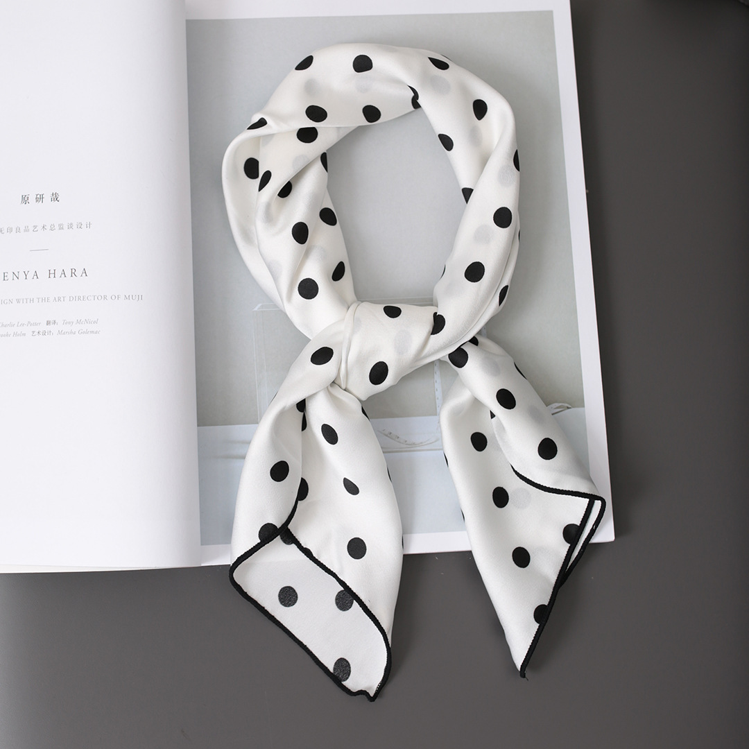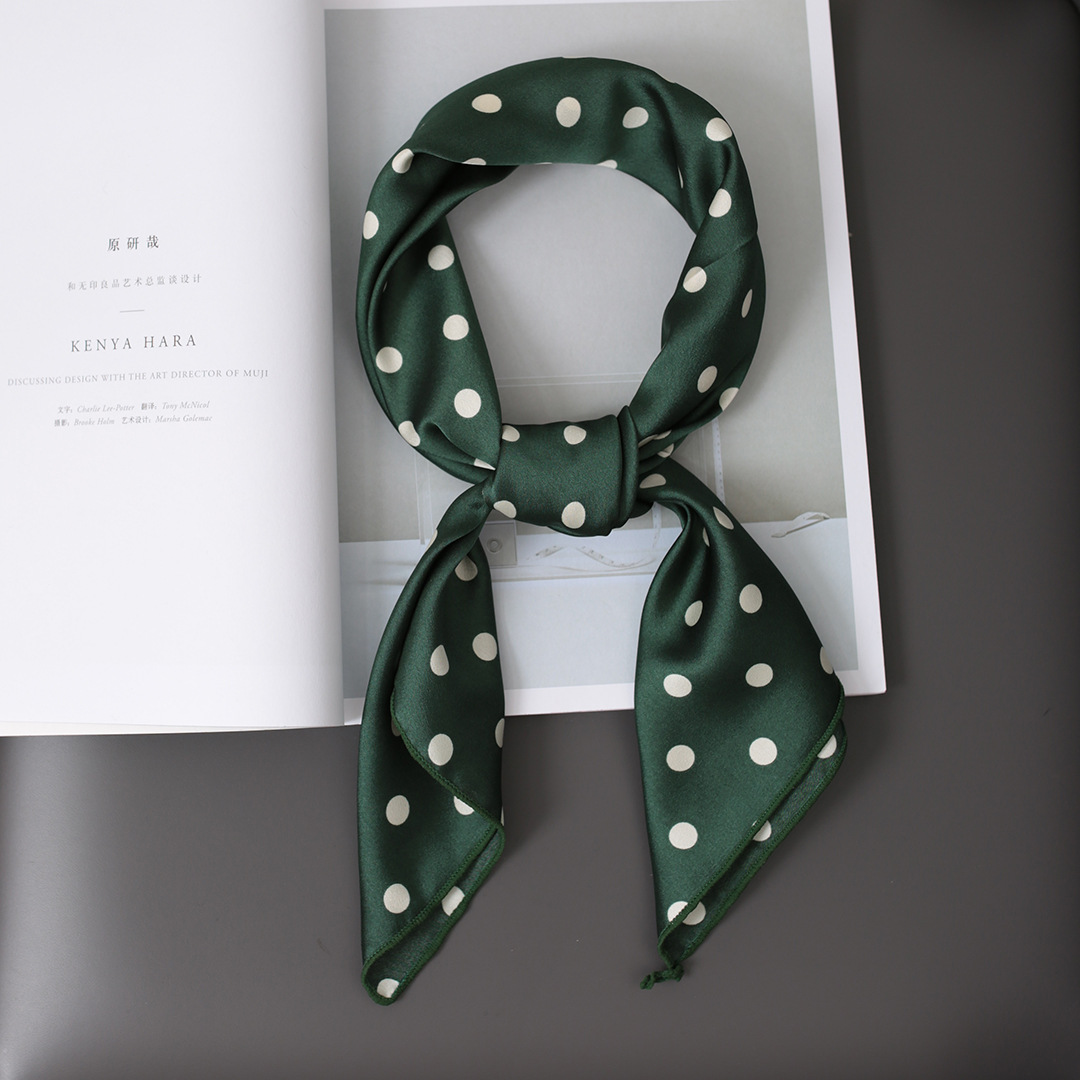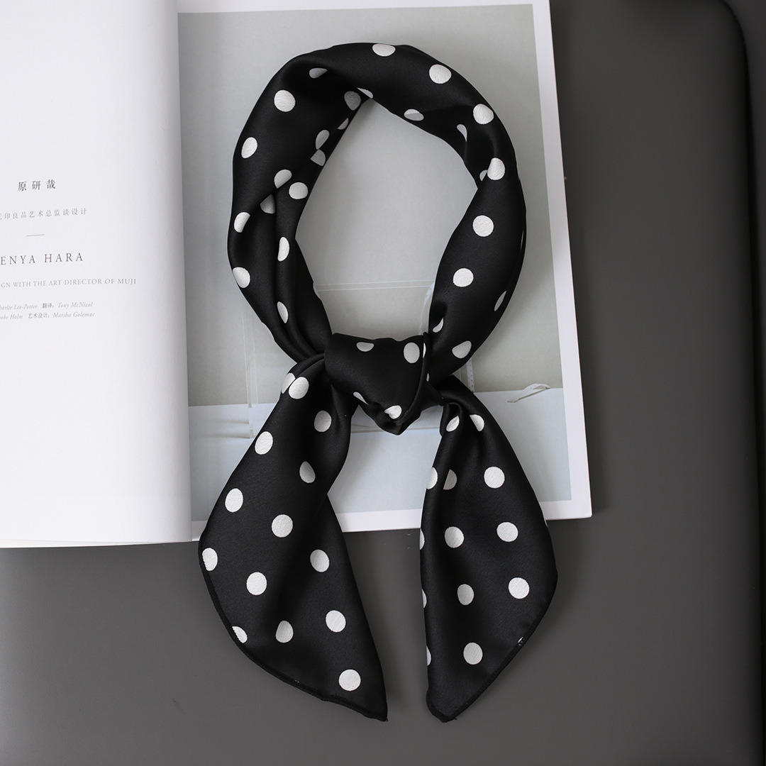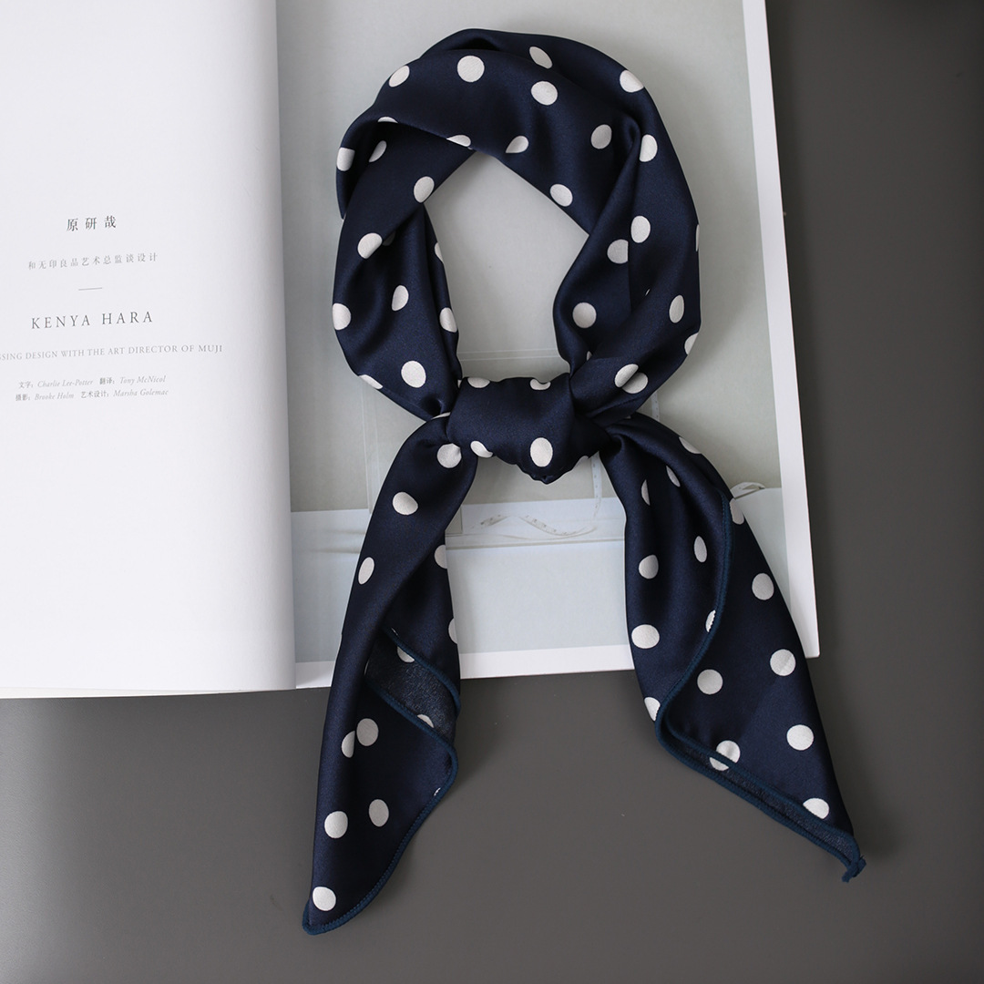 한국판 70 여성용 작은 사각형 스카프, 인터넷 연예인 복고풍 폴카 도트 작은 실크 스카프, 여름 작은 신선하고 얇은 장식 다용도 스카프