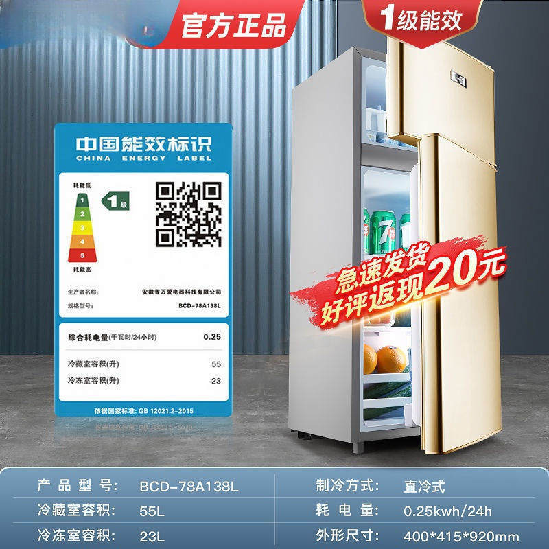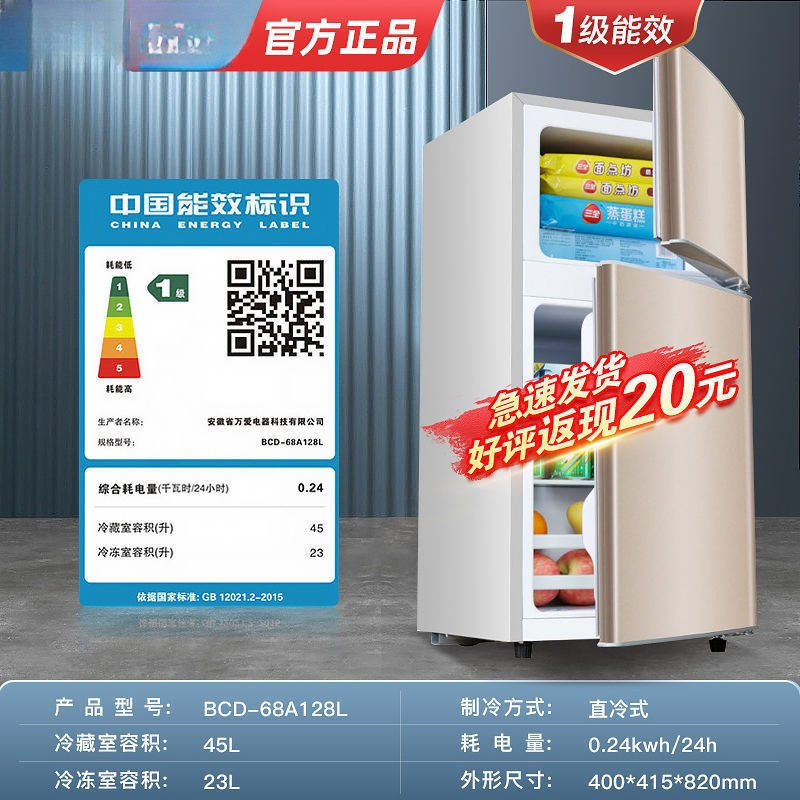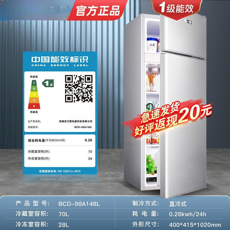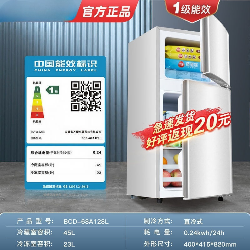 냉장고 가정용 양문형 소형 2인용 미니 냉동고 기숙사 임대 에너지 절약 1급 에너지 효율 공장 직접 배송