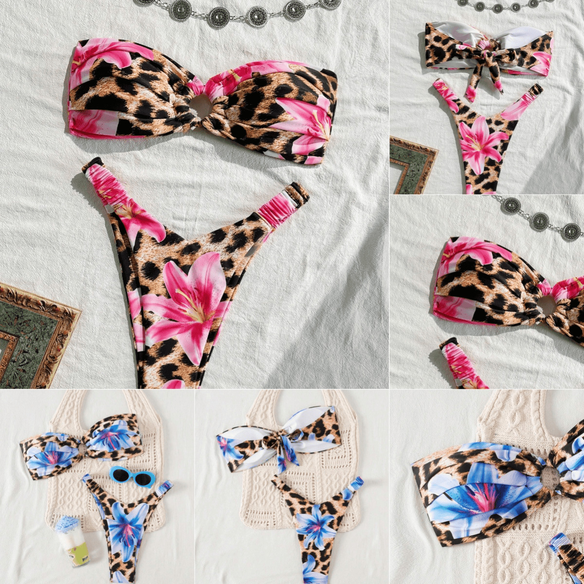 2025 여성용 튜브 탑 섹시한 홀리데이 레오파드 플라워 패턴 비키니 타이트 캐주얼 우아한 투피스 수영복스토어 가기