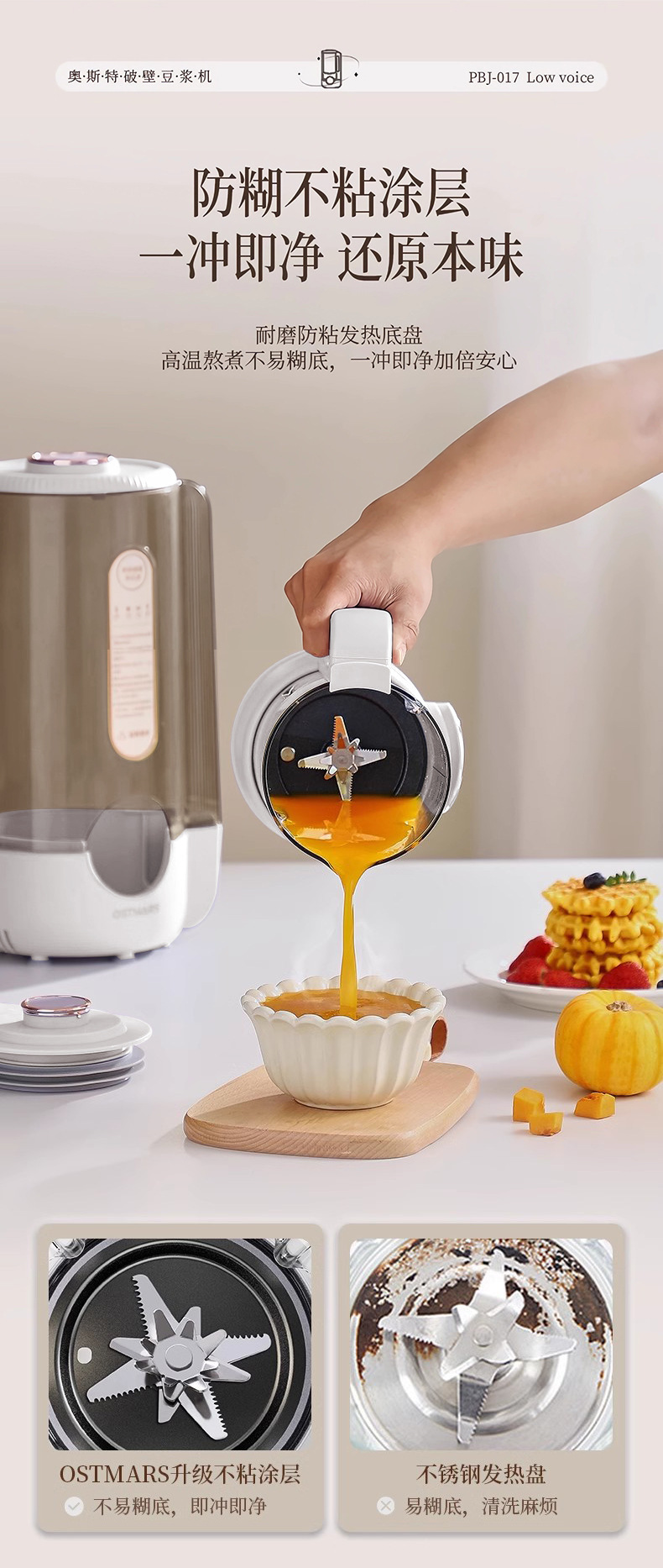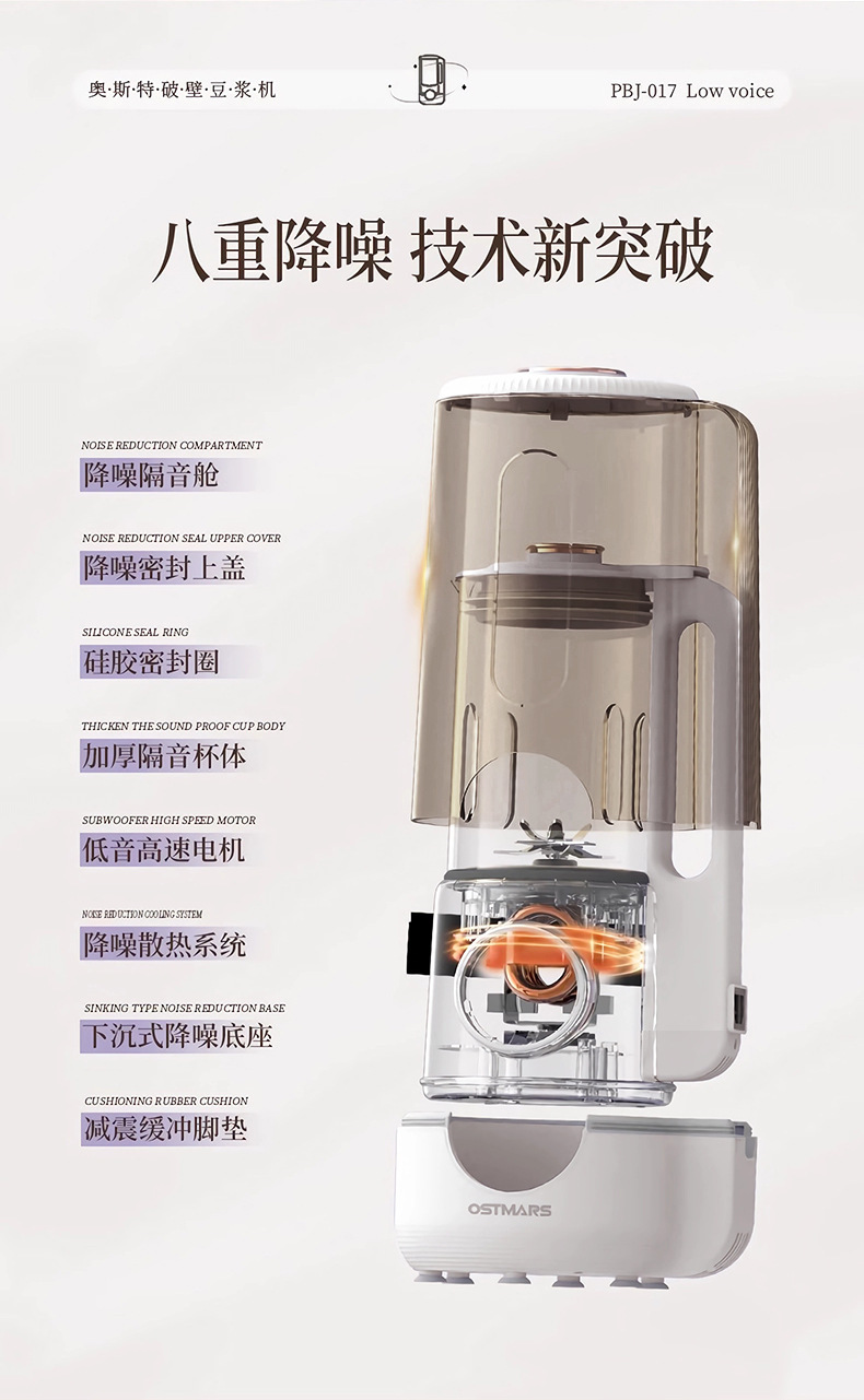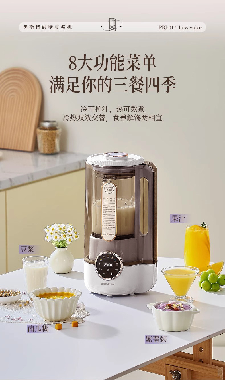 독일 Ostmars 벽 깨는 기계 3-4 가족 필터없는 대두 우유 기계 대용량 다기능 완전 자동 요리 기계