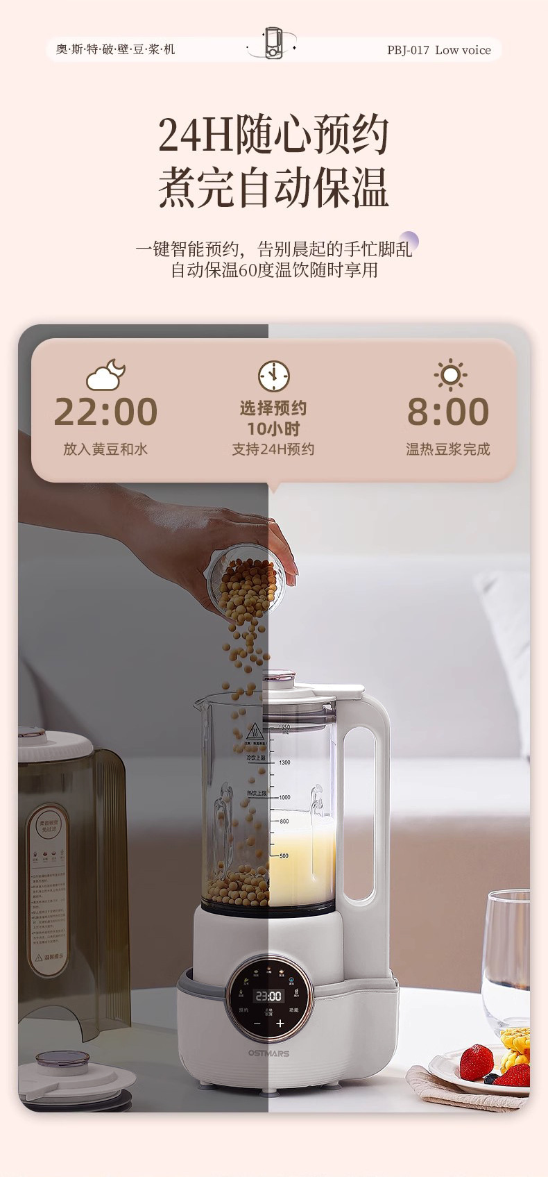 독일 Ostmars 벽 깨는 기계 3-4 가족 필터없는 대두 우유 기계 대용량 다기능 완전 자동 요리 기계스토어 가기