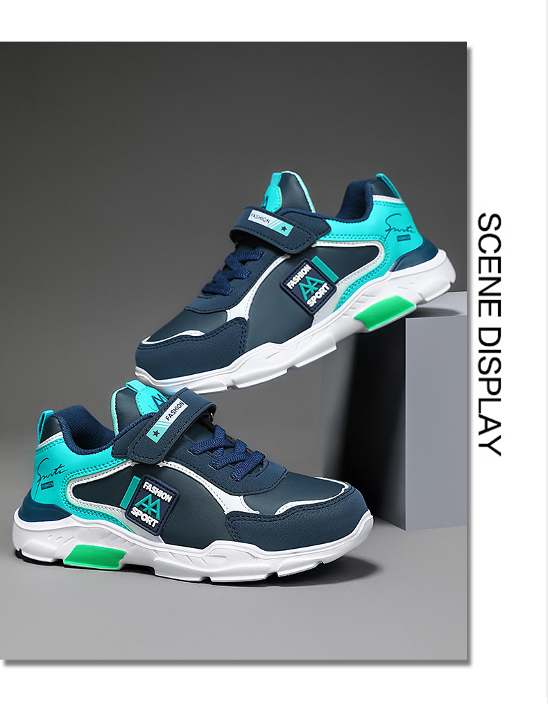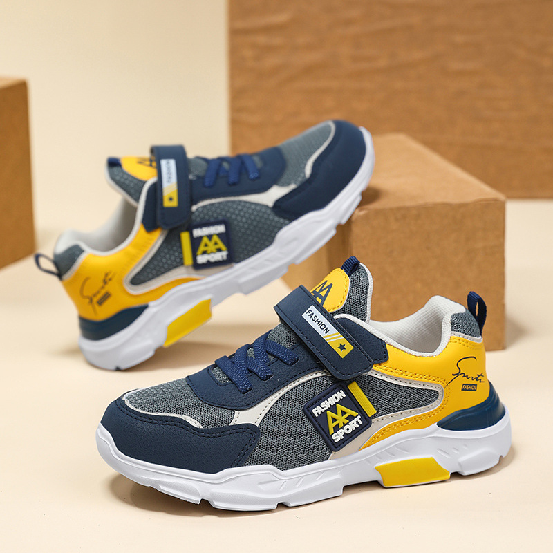 국경 간 어린이 운동화 새로운 통기성 메쉬 가죽 국수 중형 및 대형 어린이 달리기 신발 경량 소년 캐주얼 트렌디 아동용 신발스토어 가기