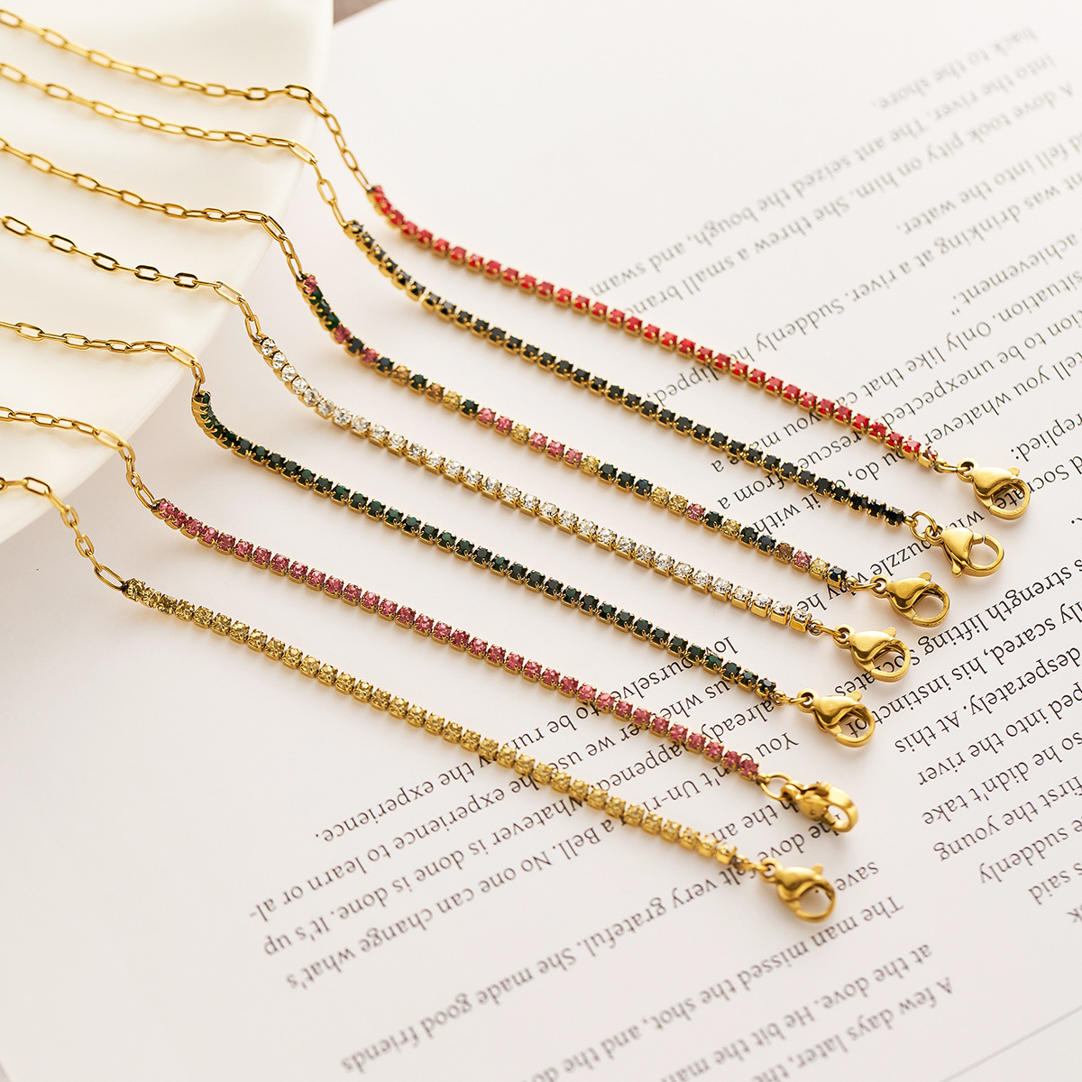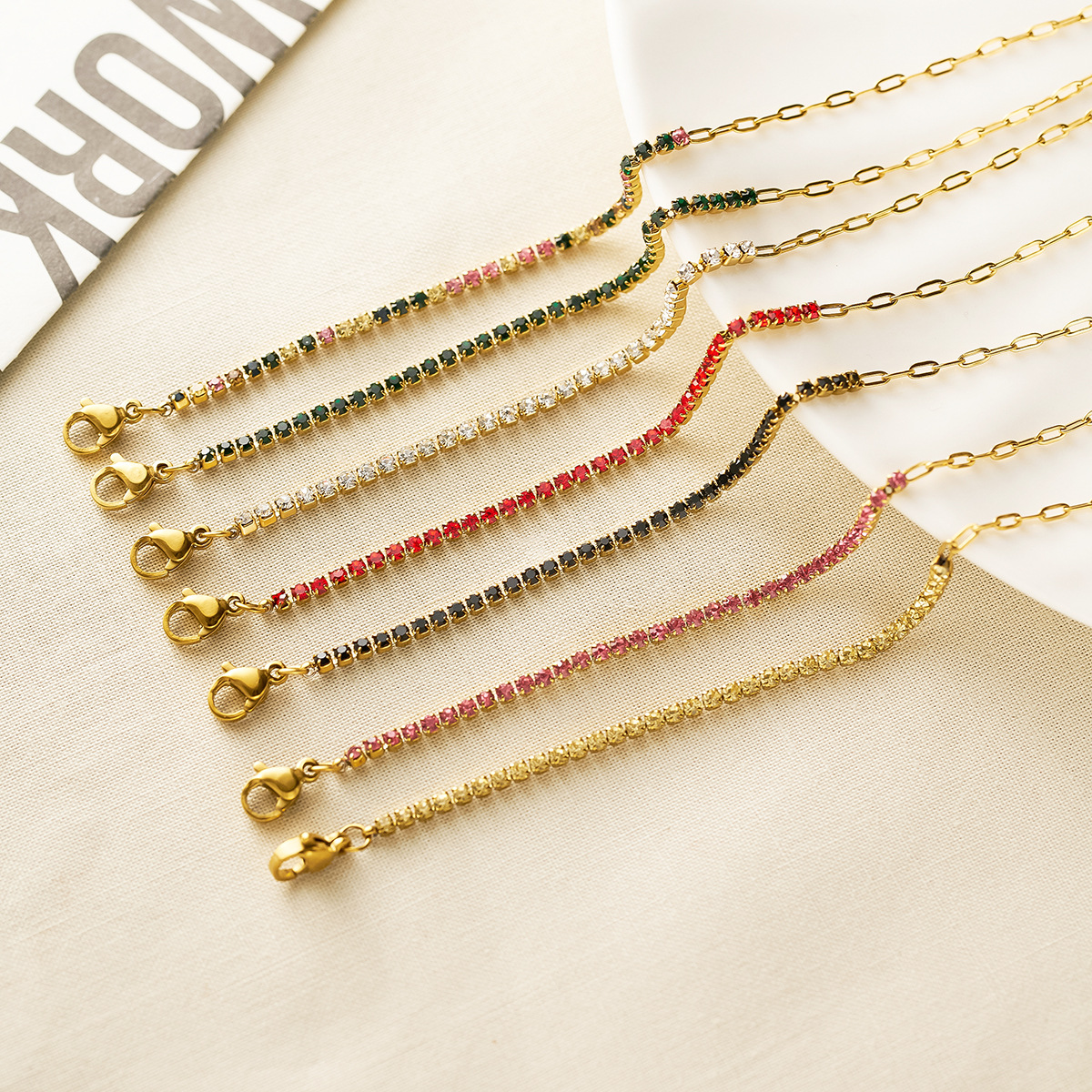 국경 간 뜨거운 판매 티타늄 스틸 단일 행 지르콘 팔찌 여성용 도금 18k 스티칭 크로스 체인 디자인 절묘한 올 매치 핸드 쥬얼리스토어 가기