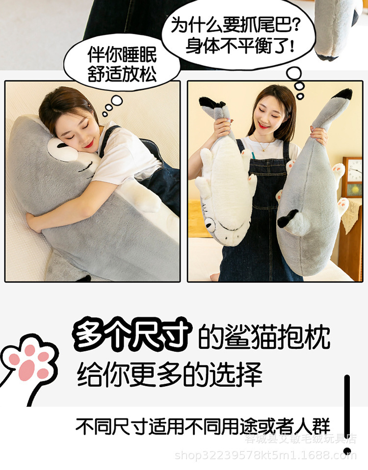 상어 고양이 재미 베개 큰 해양 동물 귀여운 봉제 인형 편안한 소녀 잠자는 선물 공장스토어 가기