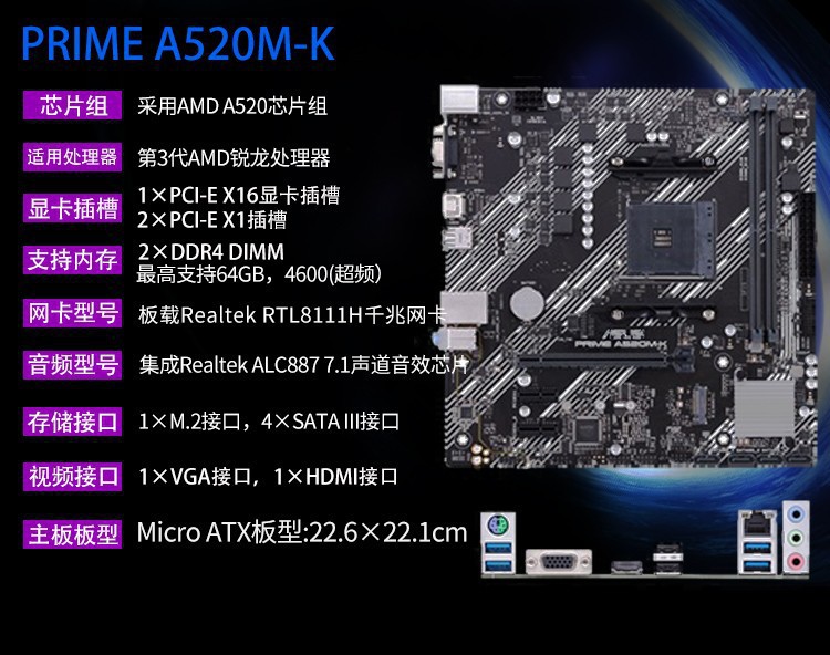 지원 AMD 5500AM4 인터페이스 CPU를 위한 Asus A520M-K 데스크톱 컴퓨터 게임 사무실 마더 보드스토어 가기