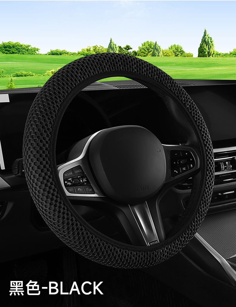 자동차 스티어링 휠 커버 아이스 실크 통기성 미끄럼 방지 땀 흡수성 사계절 보편적 인 상쾌한 메쉬 탄성 핸들 커버 여름 새로운