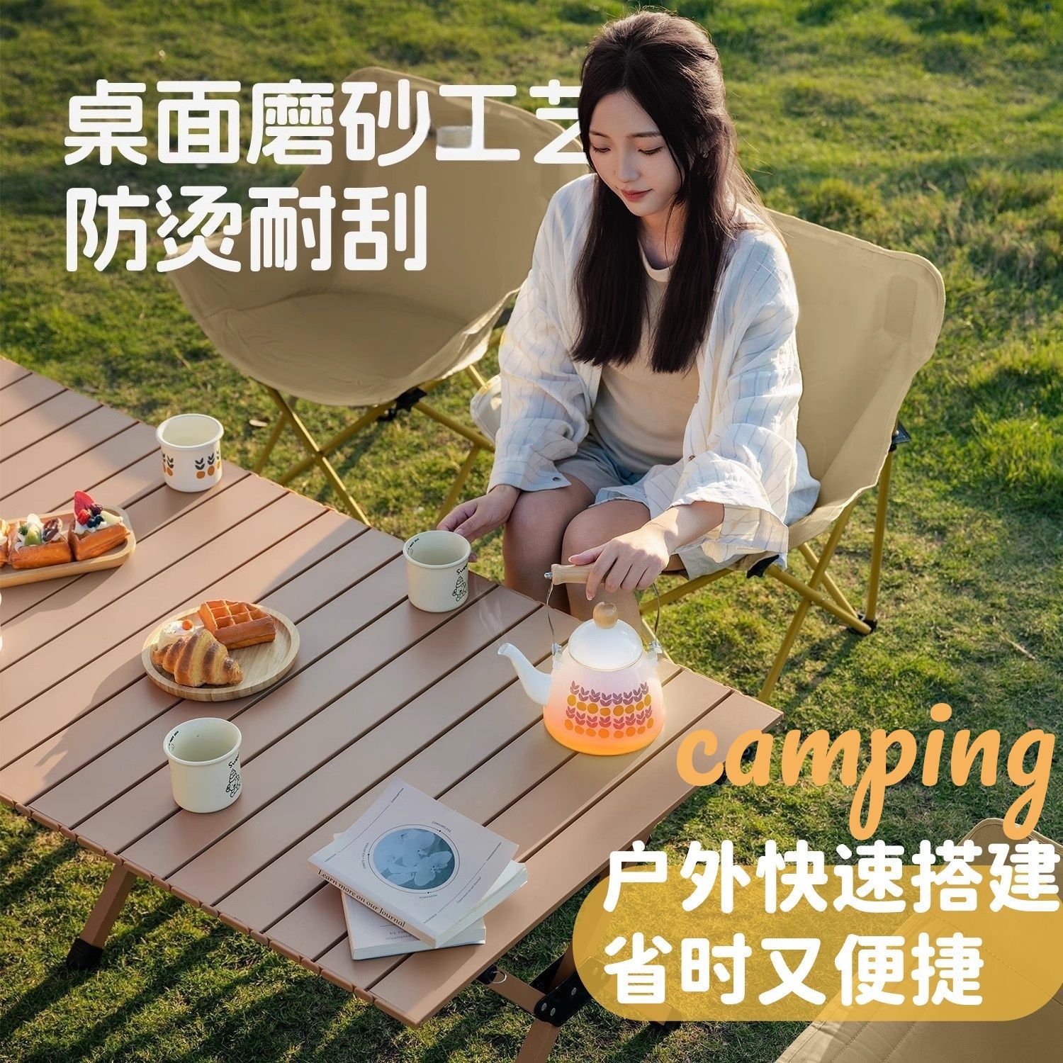 야외 접이식 테이블과 의자 휴대용 테이블과 의자 울트라 라이트 문 의자 발코니 캠핑 레저 테이블과 의자 세트