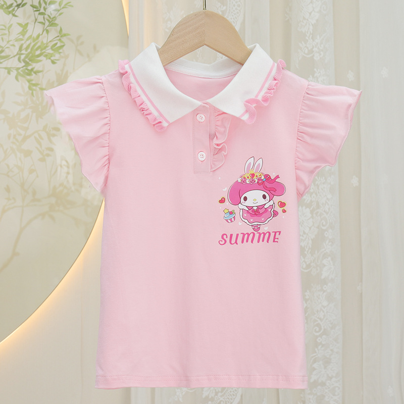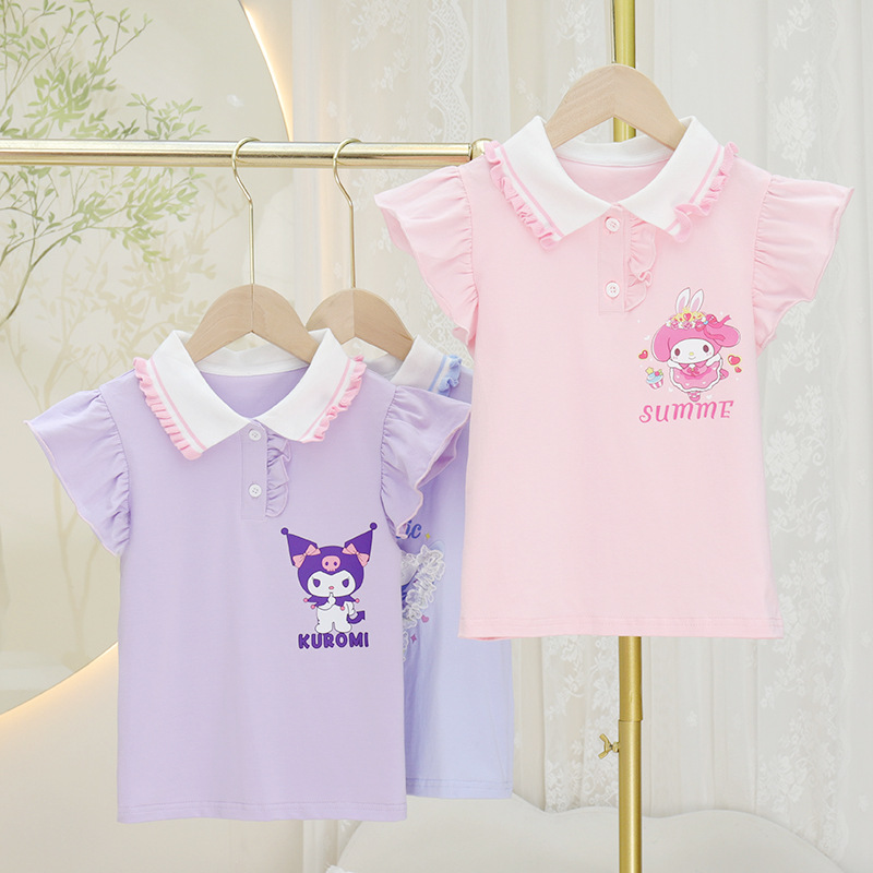 2025 여름 새로운 패션 여자 티셔츠 캐주얼 반팔 최고 어린이 만화 아기 올 매치 서양식 아동복스토어 가기