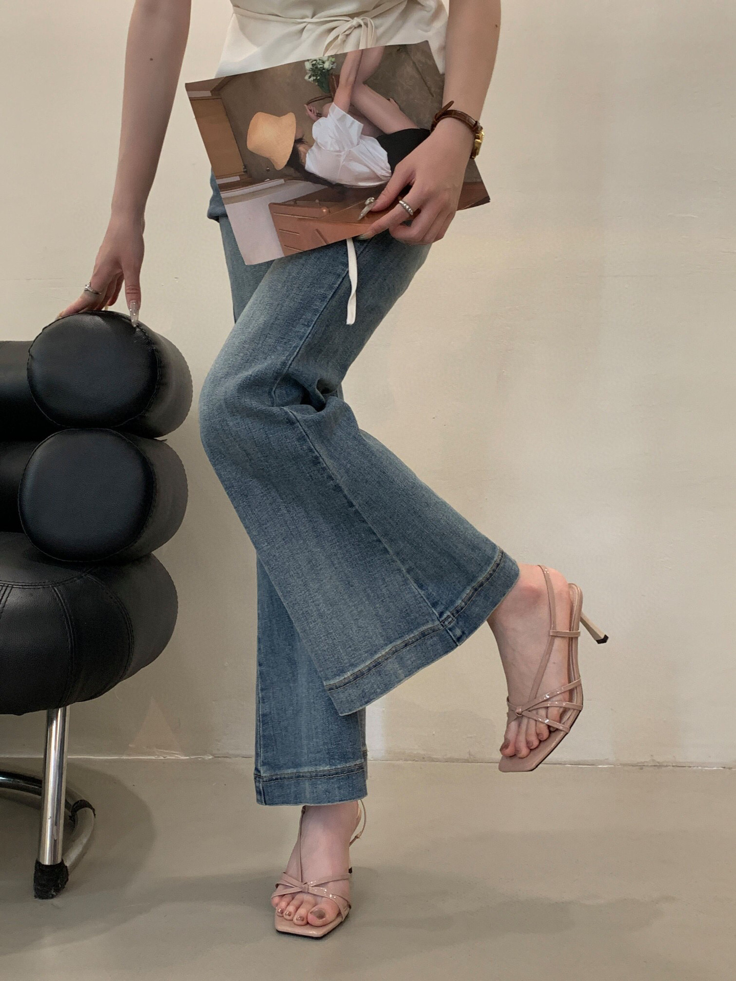 5 & 7cm 얇은 힐 샌들 여자 2025 년 여름 프랑스 스타일 활 원피스 오픈 발가락 하이힐 샌들 로마 여성스토어 가기