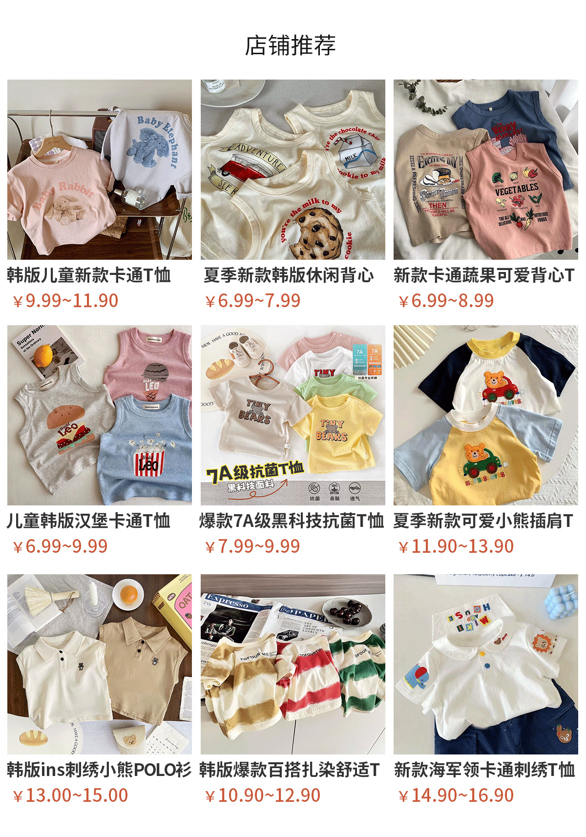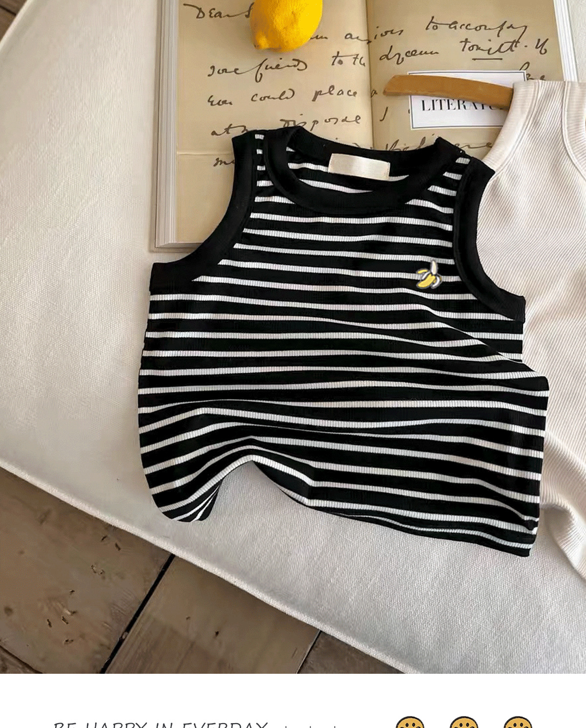 어린이 조끼 여름 소년과 소녀 자수 줄무늬 톱 한국 스타일 만화 단색 아이스 실크 아기 민소매 트렌드스토어 가기