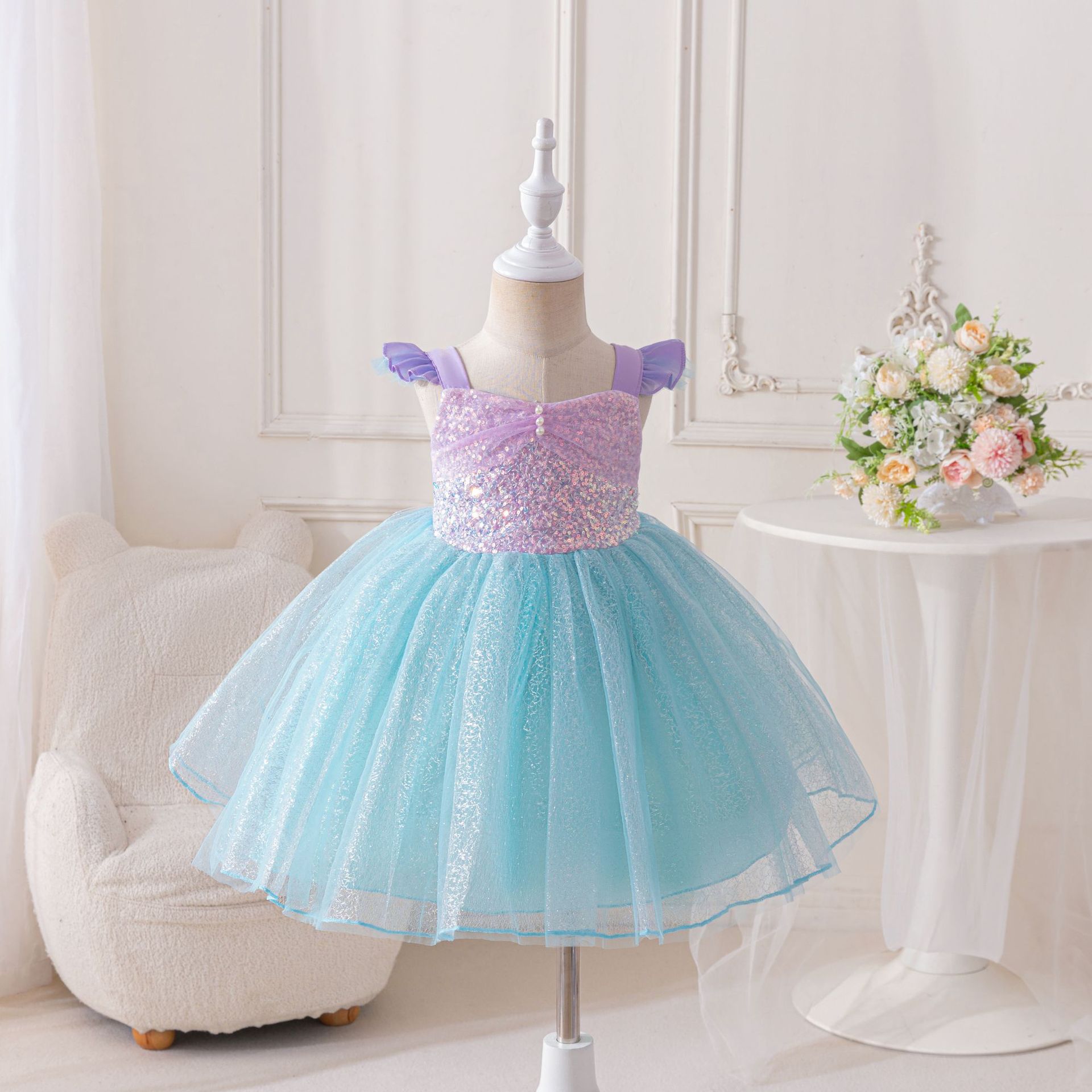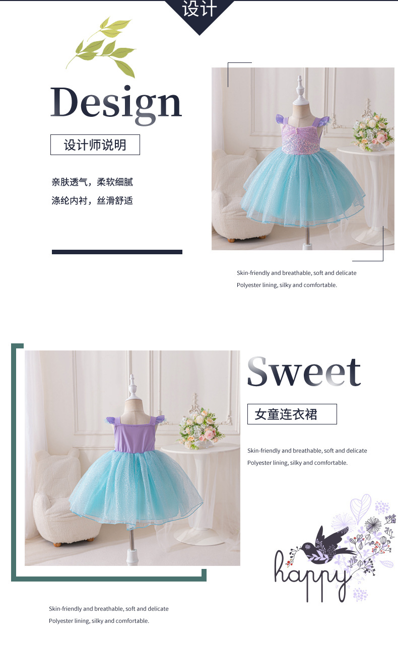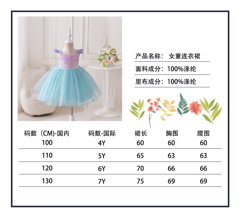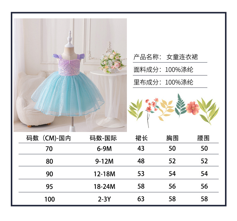 국경을 넘는 여름 신상 아동 드레스 돌잔치 드레스 인어공주 드레스 귀여운 여자아이 드레스