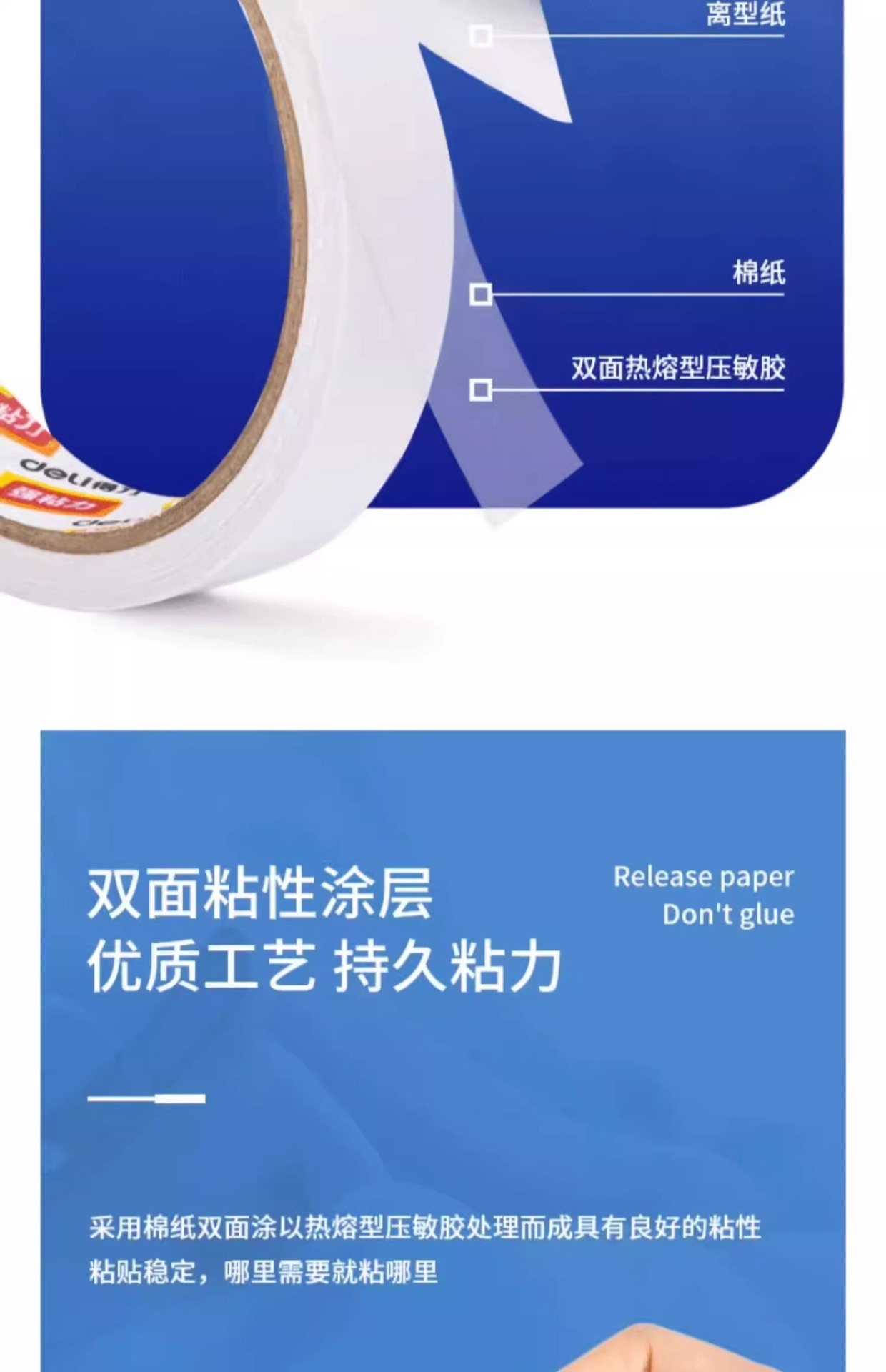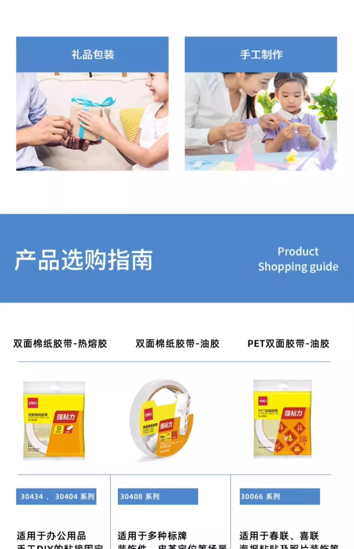 델리 양면 접착 높은 점도 강한 고정 없음 어린이 수제 양면 접착 용지 손 찢기 초박형 접착 테이프