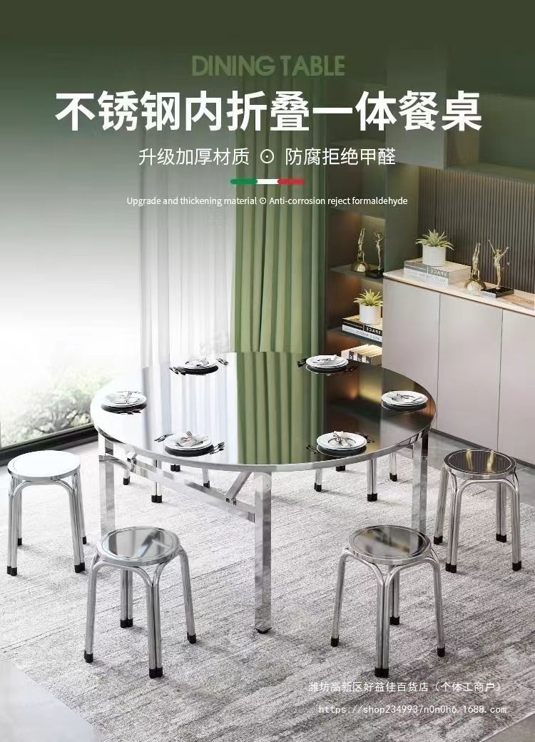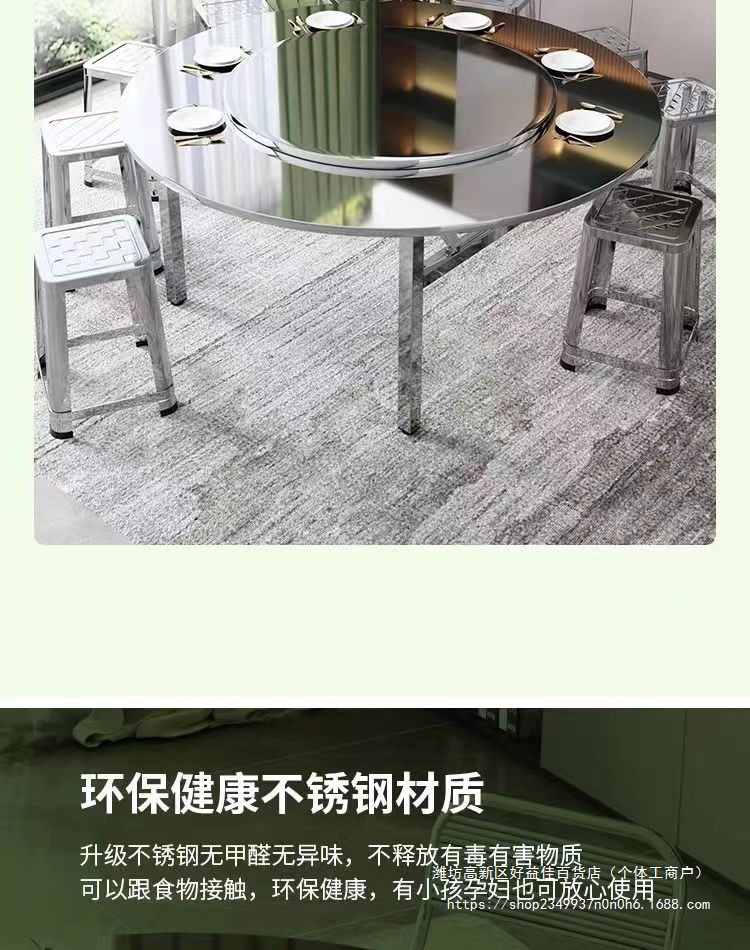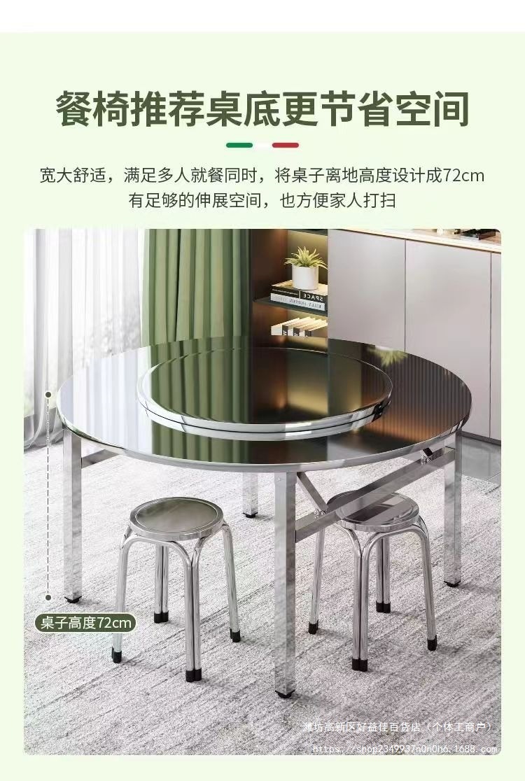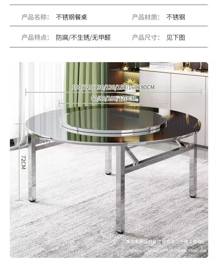 추가로 두꺼운 스테인레스 스틸 접이식 테이블 라운드 테이블 다파 테이블 러닝 워터 테이블 큰 라운드 테이블 스테인레스 스틸 테이블 턴테이블스토어 가기