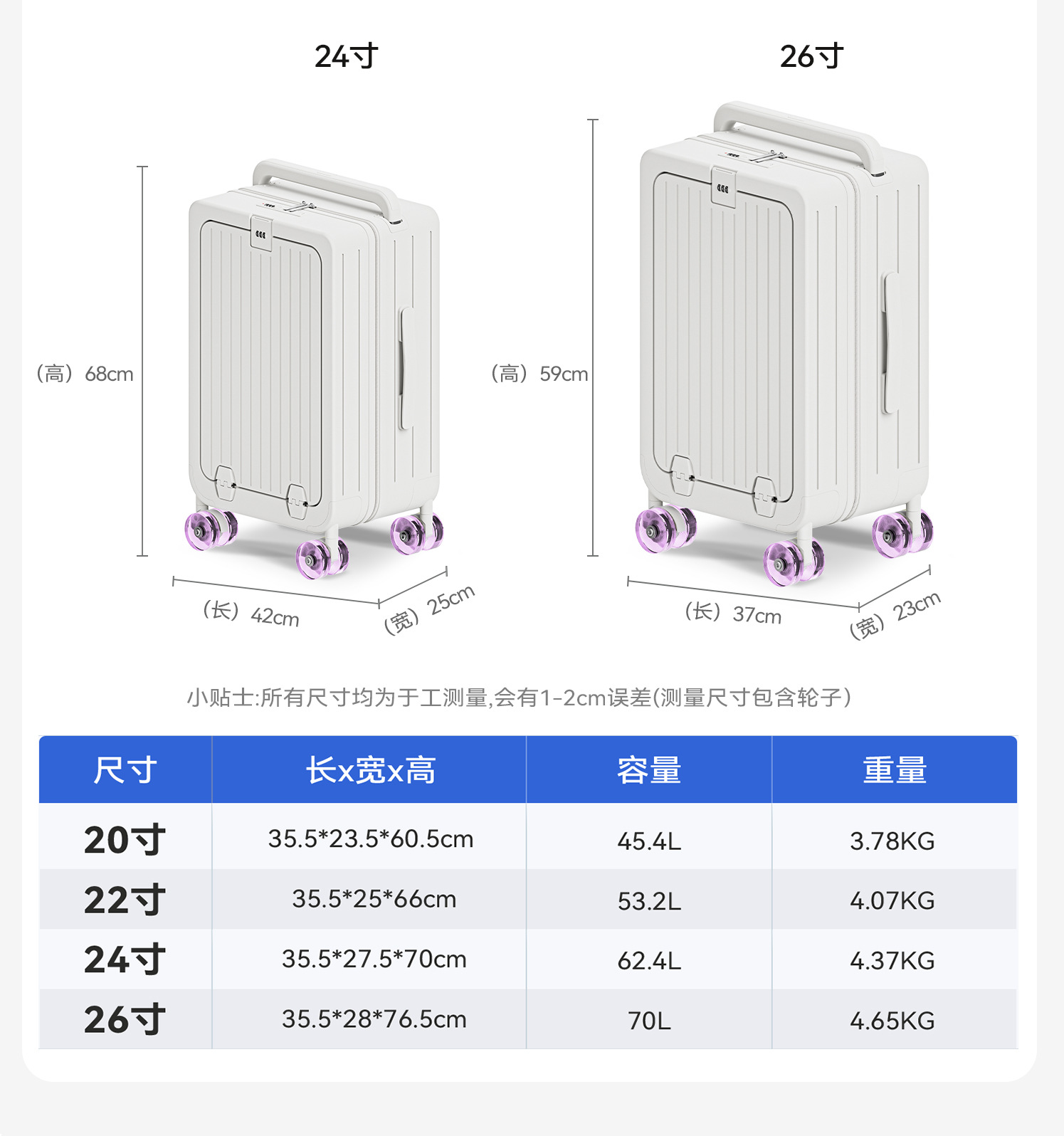 넓은 타이로드, 하나의 열쇠, 전면 개방 20 인치 수하물 케이스, 다기능 강철 베어링, 젤리 휠, 여행 가방, 비밀번호, 트롤리 케이스