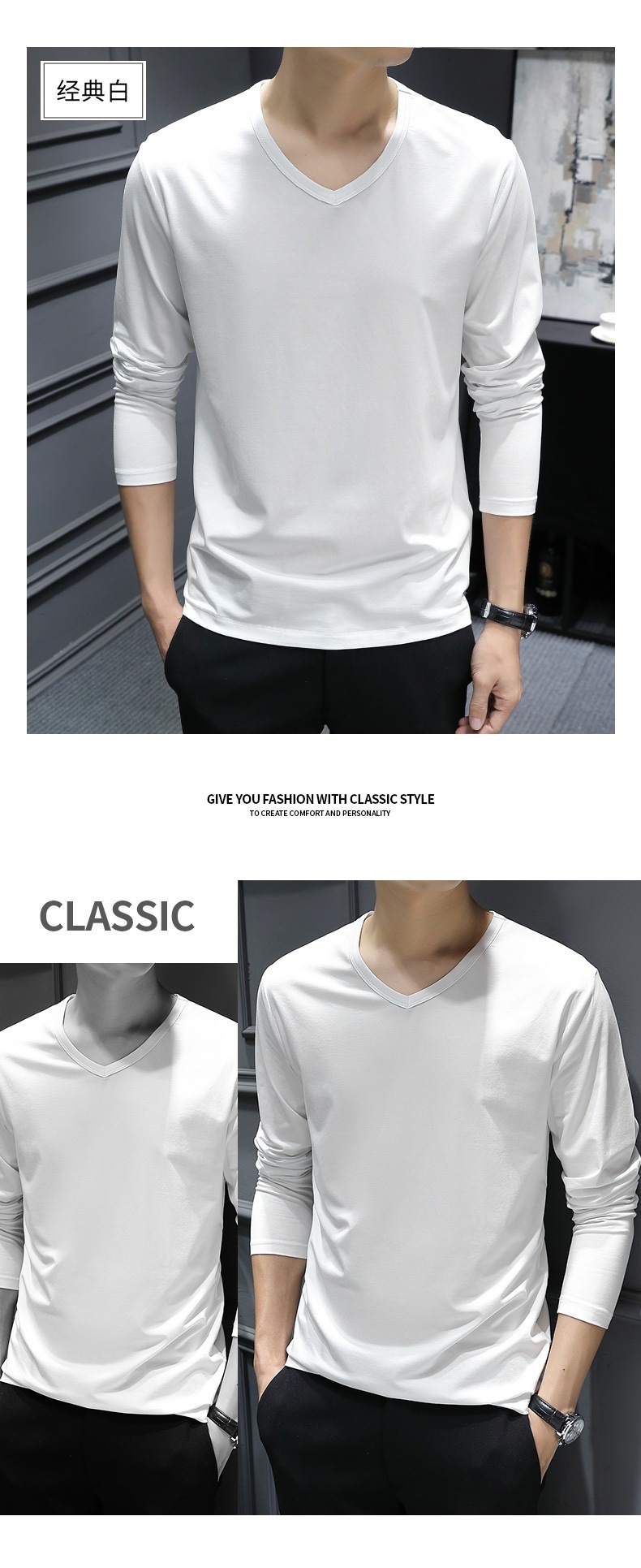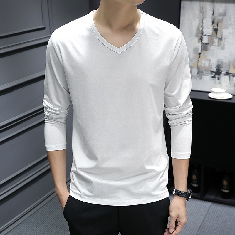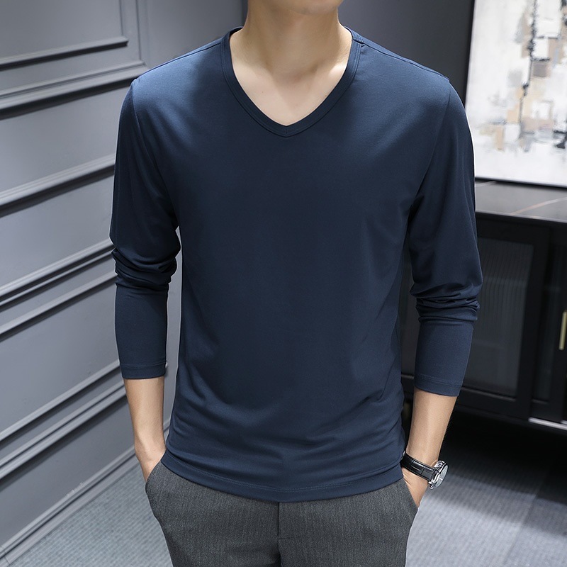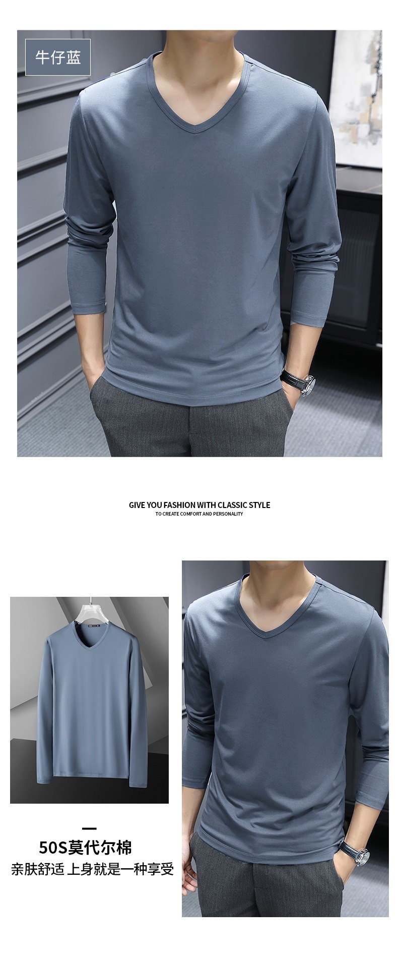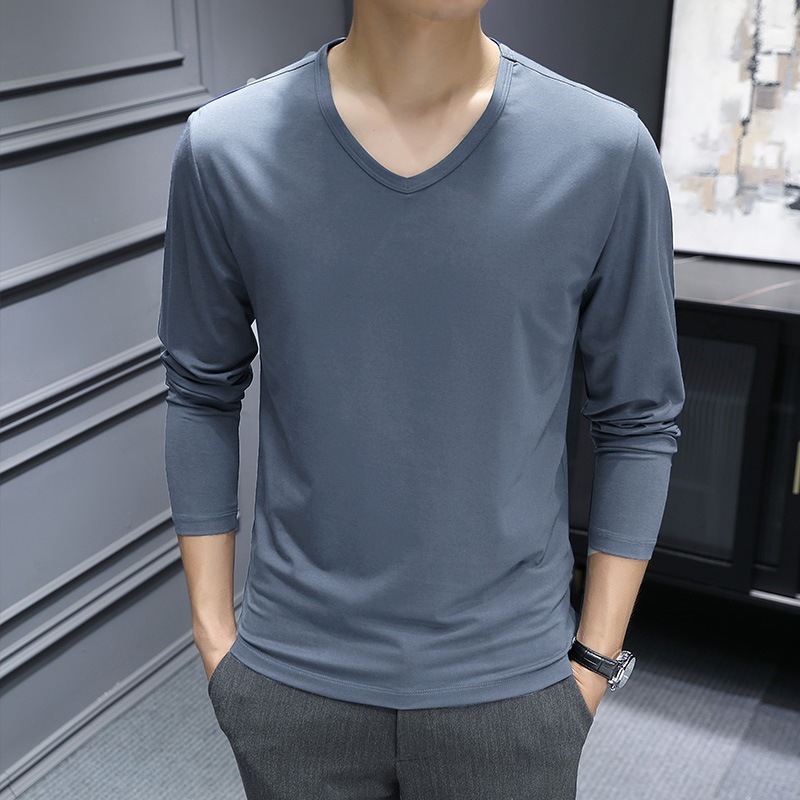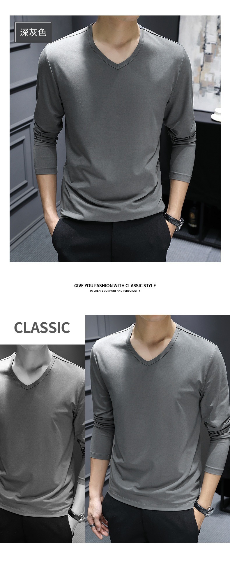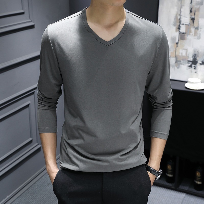 도매 회색 가을 옷 남자 v 넥 긴팔 티셔츠 봄과 여름 얇은 단색 내부 레이어링 셔츠 2022 새로운 스타일스토어 가기