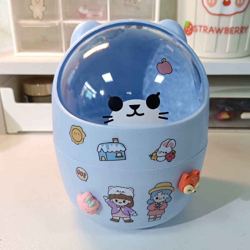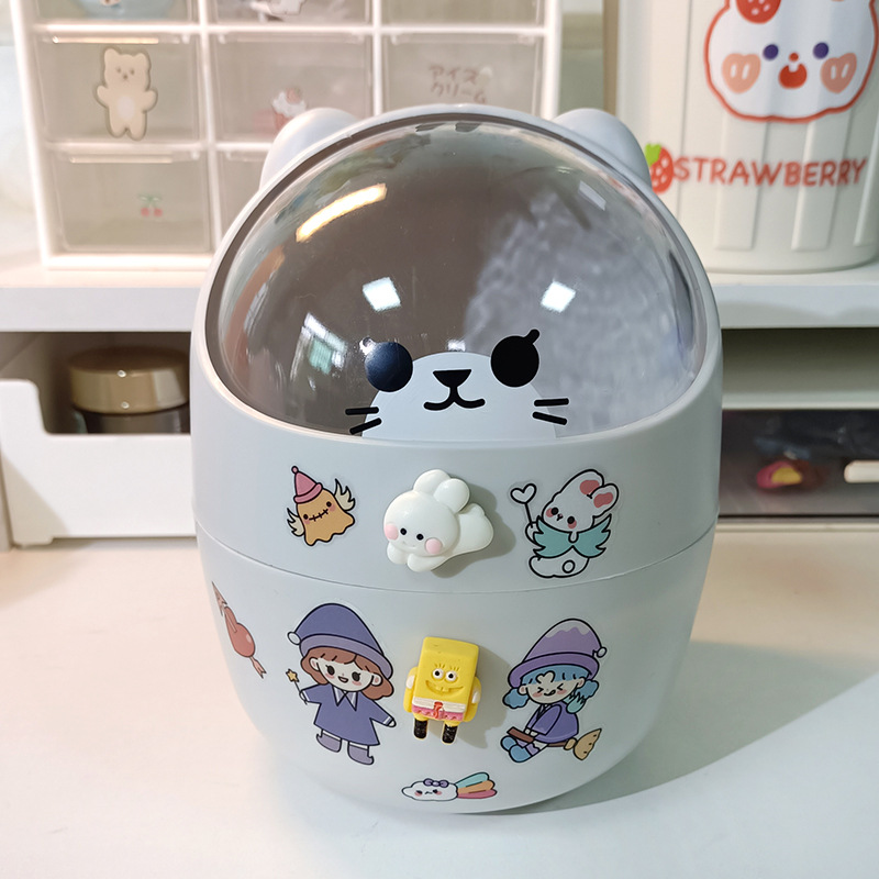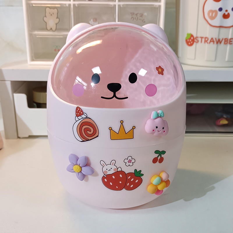 데스크탑 휴지통 귀여운 만화 곰 미니 스토리지 버킷 학생 기숙사 가정용 잡화 저장 상자 폐기물 종이 버킷